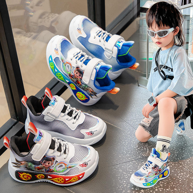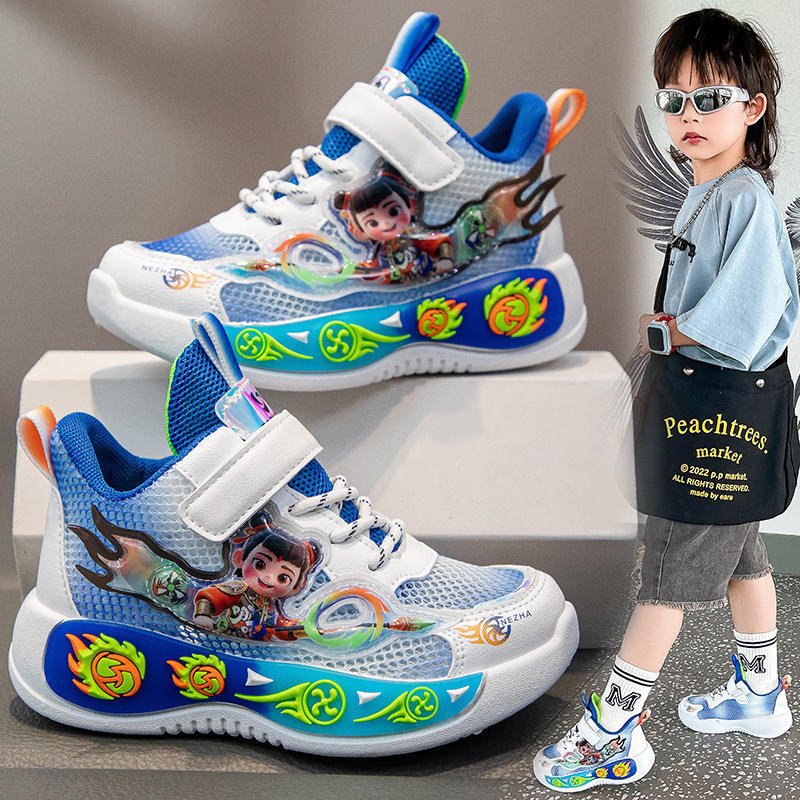 รองเท้ากีฬาเด็กผู้ชายและเด็กผู้หญิง ฤดูใบไม้ผลิ/ฤดูใบไม้ร่วง ปี 2025 ลายการ์ตูนใหม่ รองเท้าวิ่งแบบสวมสบาย ระบายอากาศได้ดี พื้นรองเท้า PU สีน้ำเงิน/สีดำ