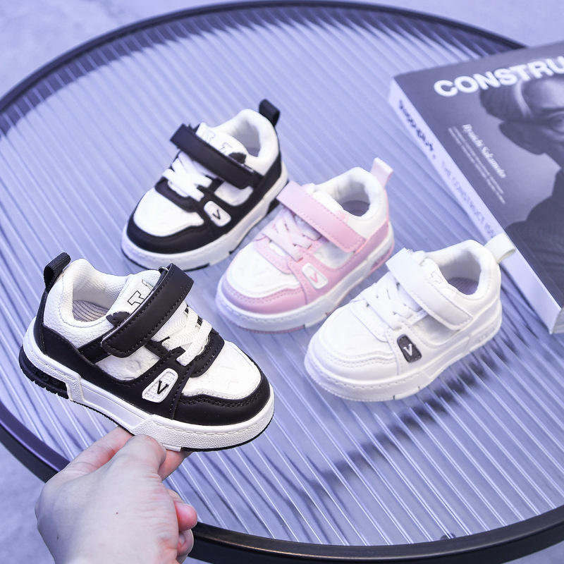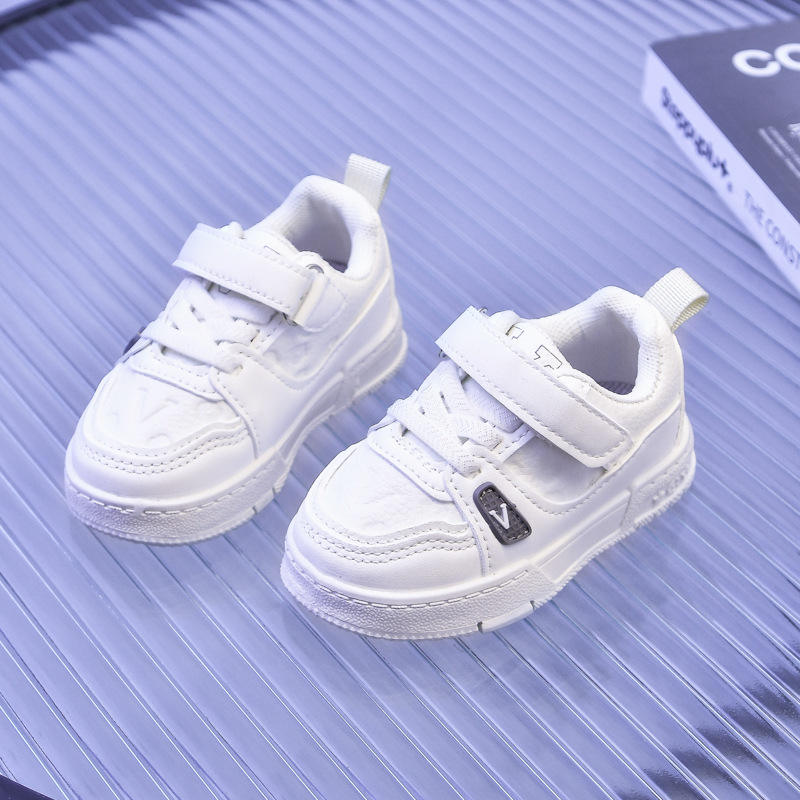 รองเท้ากีฬาลำลองสำหรับเด็กผู้ชายและเด็กผู้หญิง, รองเท้าพื้นหนาหนังสไตล์เกาหลี2025ฤดูใบไม้ผลิฤดูใบไม้ร่วงขนาดเล็กสีขาวขนาดกลาง