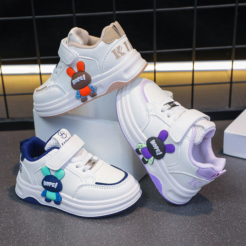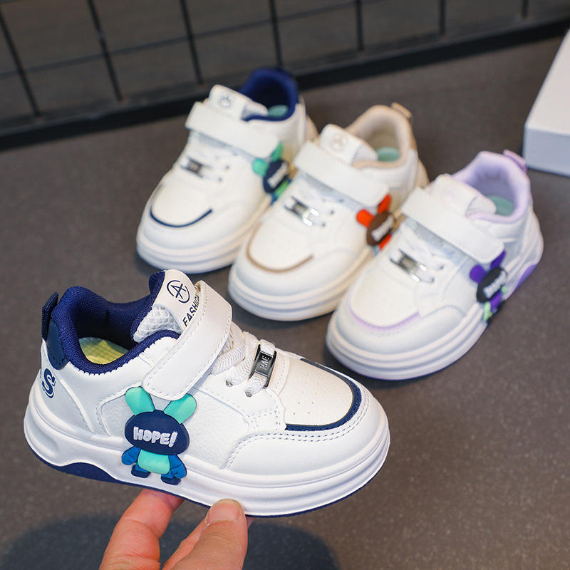 รองเท้าวิ่งลำลองสำหรับเด็กฤดูใบไม้ผลิ2025รองเท้าผ้าใบสีม่วงสีกากีสีน้ำเงินระบายอากาศได้สำหรับเด็กผู้ชายเด็กผู้หญิงดีไซน์การ์ตูนใหม่ขนาดเล็ก