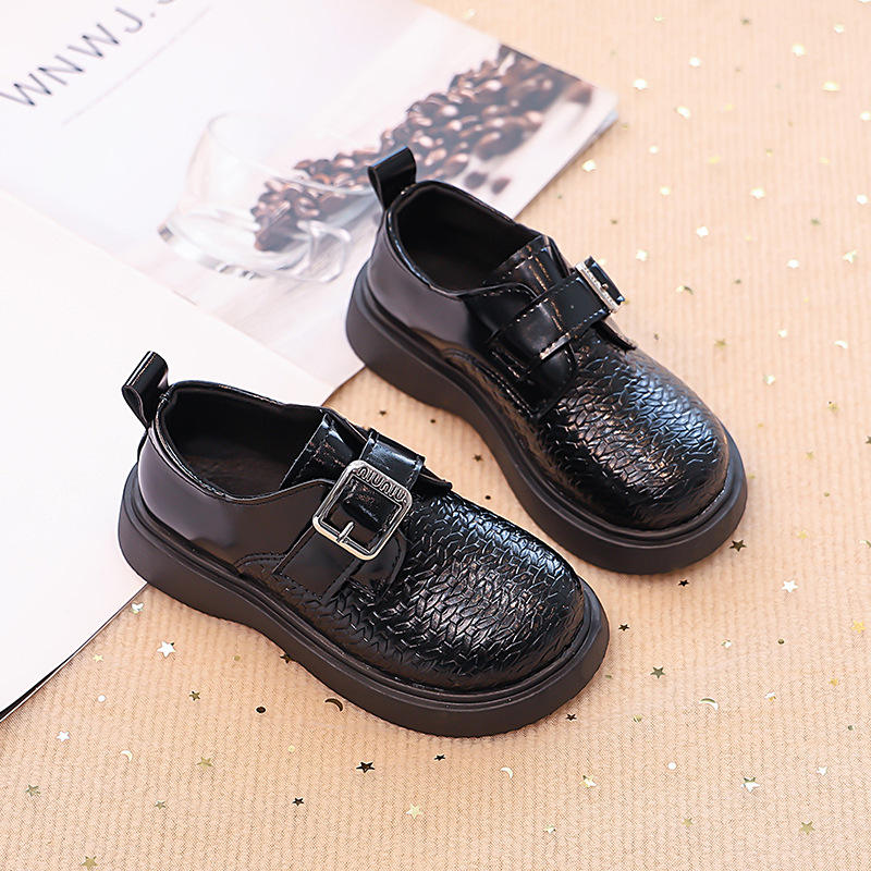 รองเท้าหนังสีเงินของเด็กผู้หญิงสำหรับฤดูใบไม้ผลิ2025รองเท้าโลฟเฟอร์สไตล์อังกฤษอินเทรนด์หัวเข็มขัดโลหะใหม่แฟชั่นซิงเกิ้ลสำหรับเด็ก