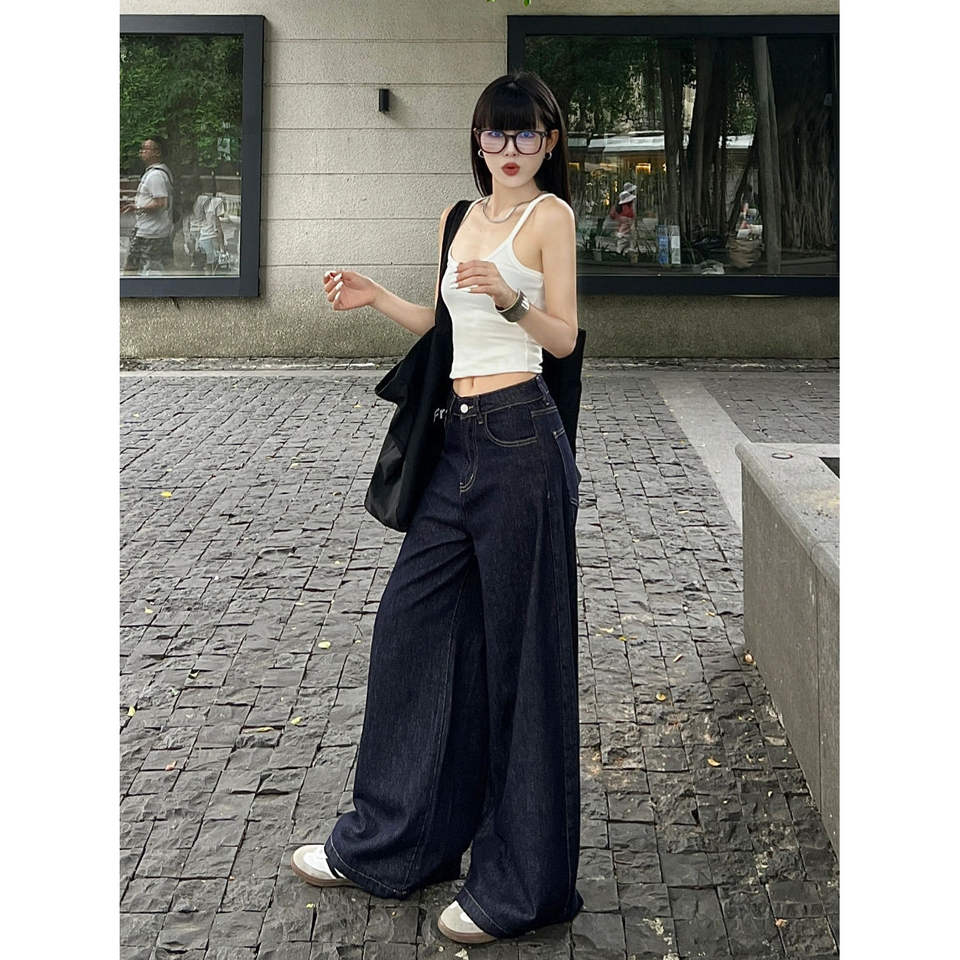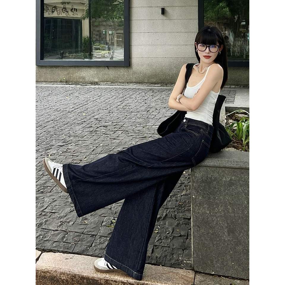 กางเกงยีนส์ขาบานเอวสูงทรงหลวมสำหรับผู้หญิงเทรนด์2025ฤดูใบไม้ผลิฤดูใบไม้ร่วง