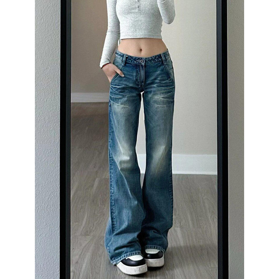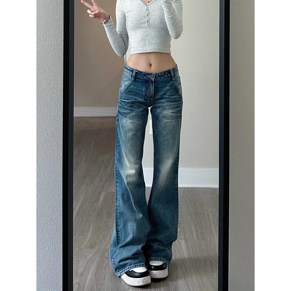 กางเกงยีนส์เอวสูงย้อนยุคของผู้หญิง2025กางเกงขากว้างหลวมกางเกงถูตรงระบายอากาศสไตล์อเมริกัน