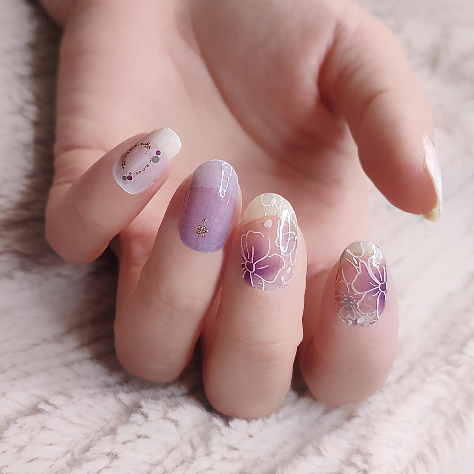 สติกเกอร์ติดเล็บสไตล์สดใสแนวคนดังอินเทอร์เน็ต2025ฤดูใบไม้ผลิดีไซน์ดอกไม้เต็มรูปแบบพร้อมฟิล์มขัดเงา
