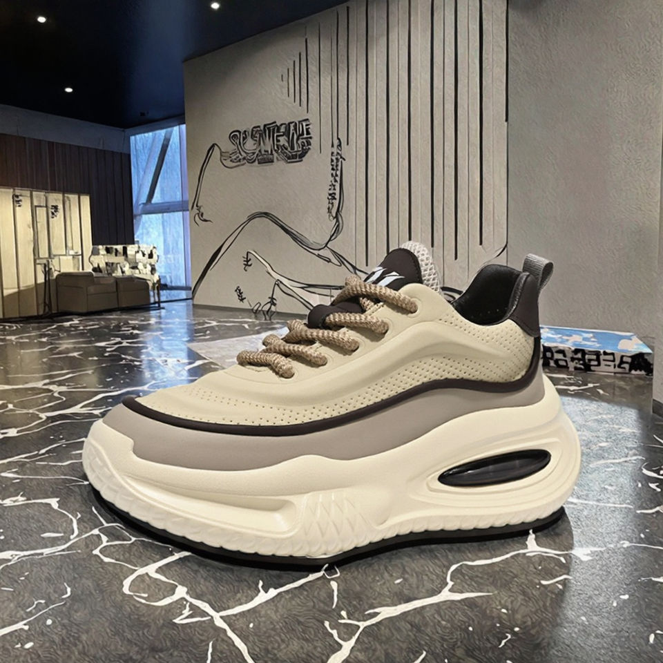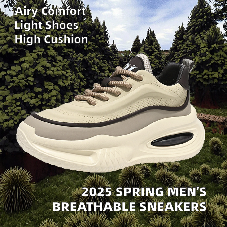 2025รองเท้าผ้าใบผู้ชายสำหรับฤดูใบไม้ผลิเบาะอากาศหนาระบายอากาศได้เข้าได้กับทุกชุดรองเท้าวิ่งแบบผูกเชือกตาข่าย