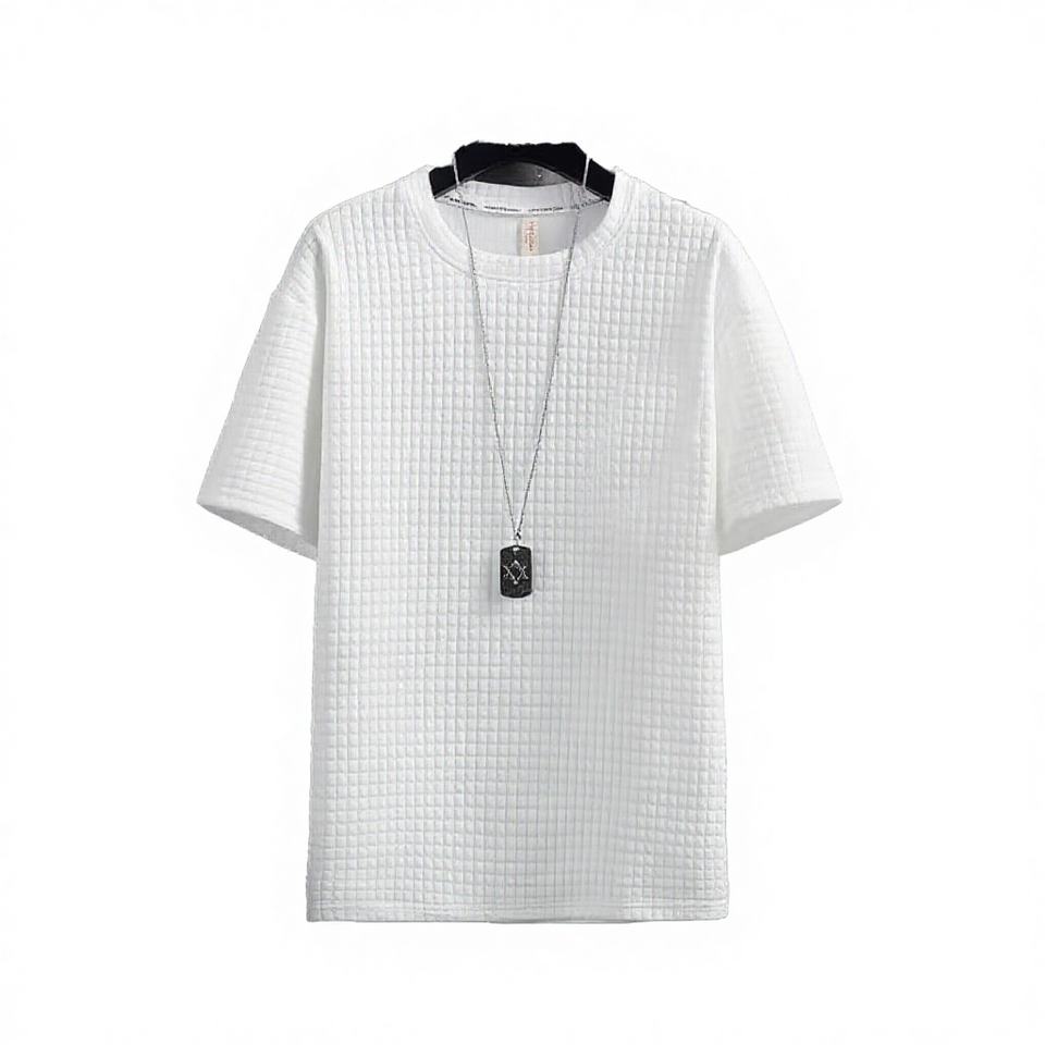 ชุดกีฬาผู้ชายสไตล์ลำลองแฟชั่นฤดูใบไม้ผลิ 2025 เสื้อยืดแขนห้าส่วน + กางเกงขาสั้นผ้าวาฟเฟิล ชุดสองชิ้นถักทอระบายอากาศได้ดี
