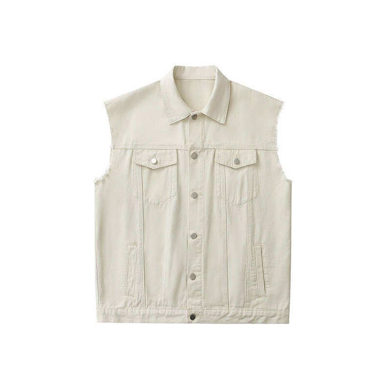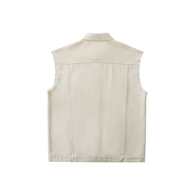 เสื้อกั๊กผ้าเดนิมคอตตอนสลิมฟิตสำหรับบุรุษฤดูใบไม้ผลิ2025แจ็กเก็ตแขนกุดทรงสลิมฟิตแฟชั่น Moto เสื้อโค้ทลำลองแจ๊กเก็ต OEM