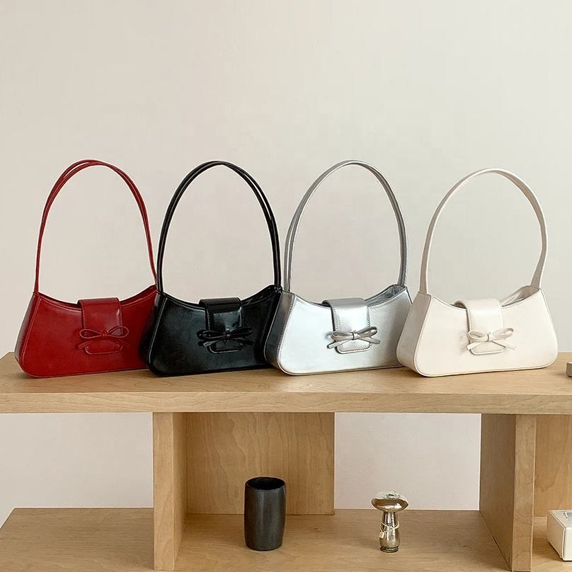 กระเป๋าถือผู้หญิงแฟชั่นดีไซน์โบว์ใหม่ ฤดูใบไม้ผลิ 2025 น่ารัก คุณภาพสูง หนัง PU นุ่ม กระเป๋าสะพายไหล่