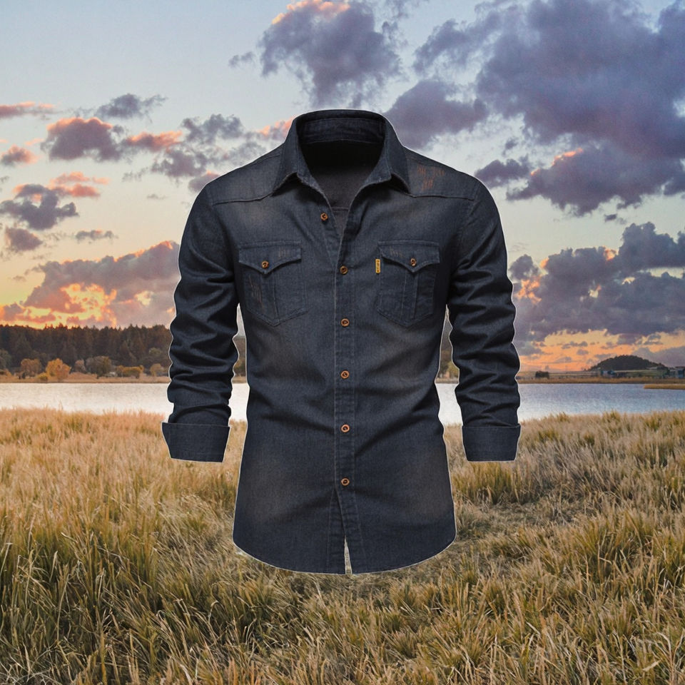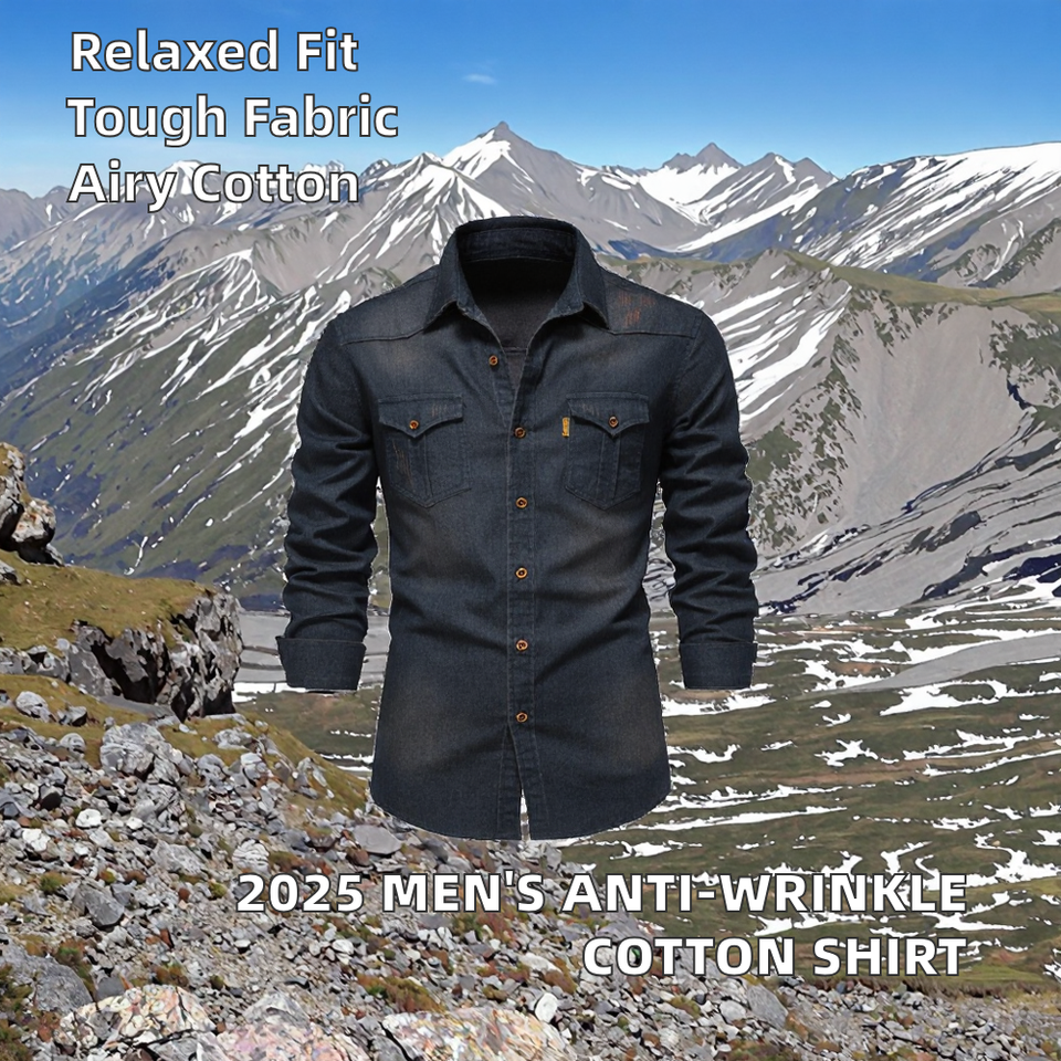 เสื้อเชิ้ตทำงานผ้าฝ้ายทวิลแขนยาวคอตั้งสำหรับผู้ชายรุ่นใหม่ประจำฤดูใบไม้ผลิปี 2025 ระบายอากาศได้ดี กันยับ เหมาะสำหรับกิจกรรมกลางแจ้ง สไตล์ลำลอง พิมพ์ลายสำหรับฤดูใบไม้ร่วง