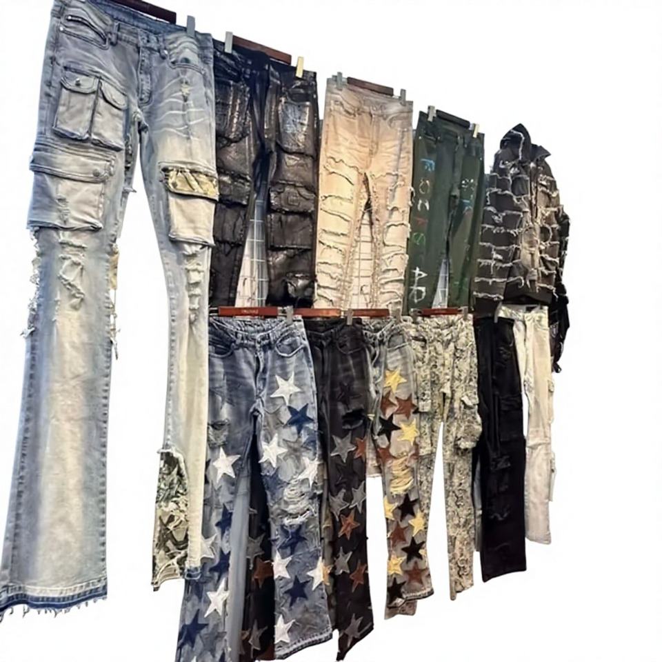 กางเกงยีนส์ทรงตรงผู้ชายรุ่นใหม่ สปริง 2025 ทรงสลิมฟิต ปักลาย สไตล์ลำลองแนวสตรีท สีน้ำเงินเดนิม