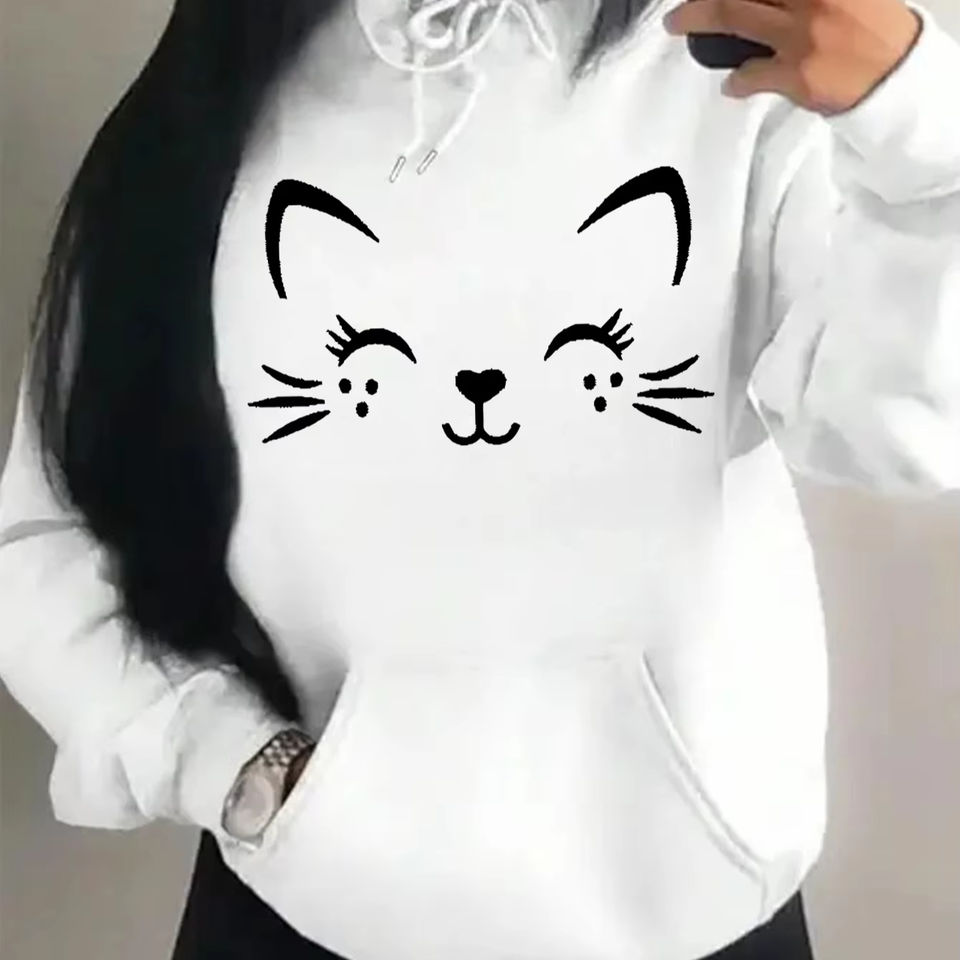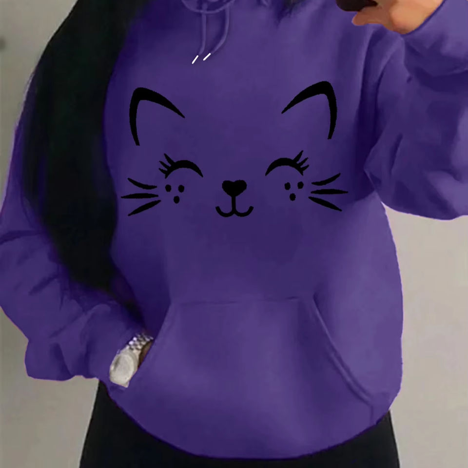 2025 Spring New Women's Warm Winter Acrylic Sweatshirt Solid Colour Hooded Lace-up with Embroidered Pockets Print Technics