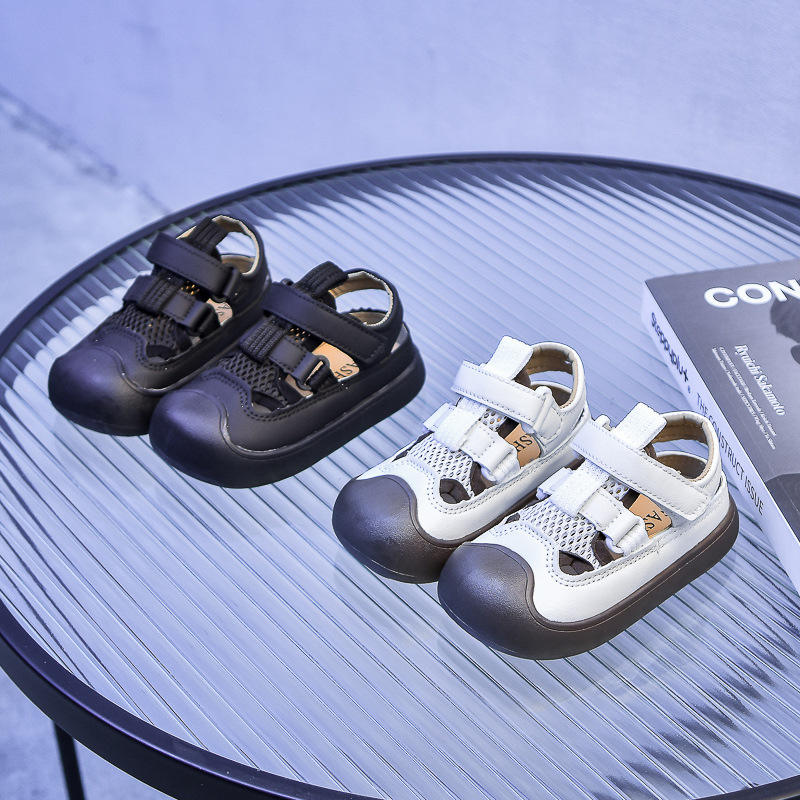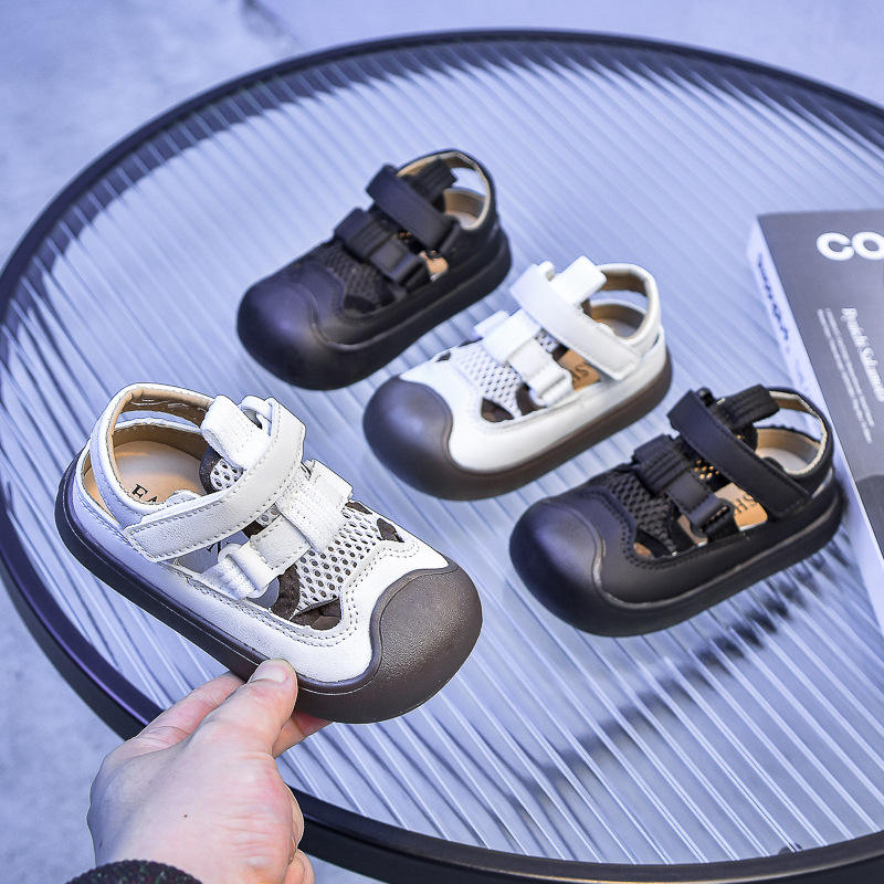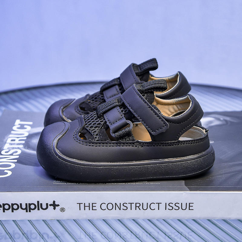 รองเท้าแตะกีฬาสำหรับเด็กรองเท้าชายหาดหัวขนมปังตาข่ายกลวงแบบใหม่สำหรับเด็กชายและเด็กหญิงพื้นรองเท้า PVC เนื้อนุ่มฤดูใบไม้ผลิฤดูร้อน2025