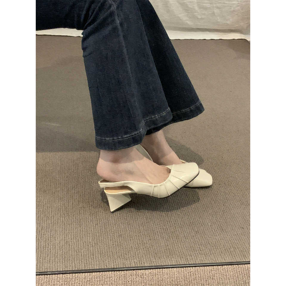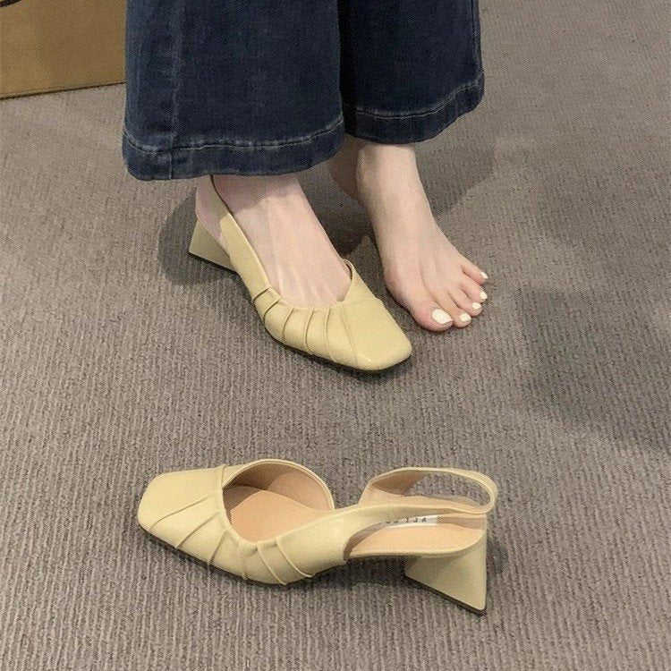 คอลเลคชั่นฤดูใบไม้ผลิ/ฤดูร้อน 2025 รองเท้าส้นสูงแบบเปิดส้นสำหรับผู้หญิง ส้นหนา ปากตื้น สไตล์ฝรั่งเศส อ่อนหวาน