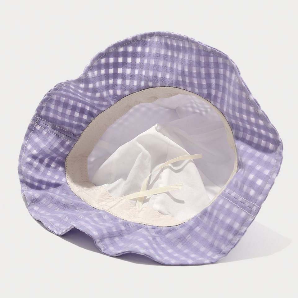 หมวกทรงบักเก็ตปีกโค้งลายสก็อตสีอ่อนน่ารัก ป้องกันแสงแดด สไตล์ลำลอง สำหรับฤดูใบไม้ผลิ/ฤดูร้อน ปี 2025