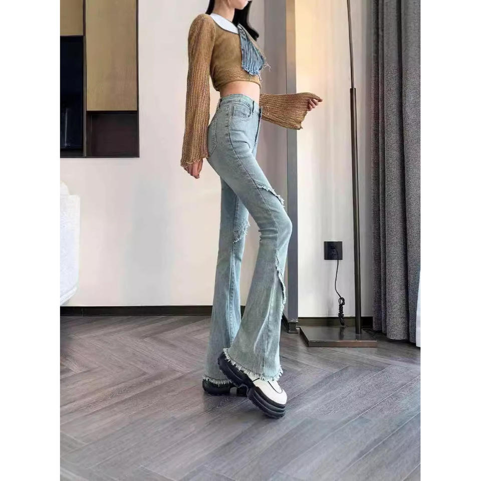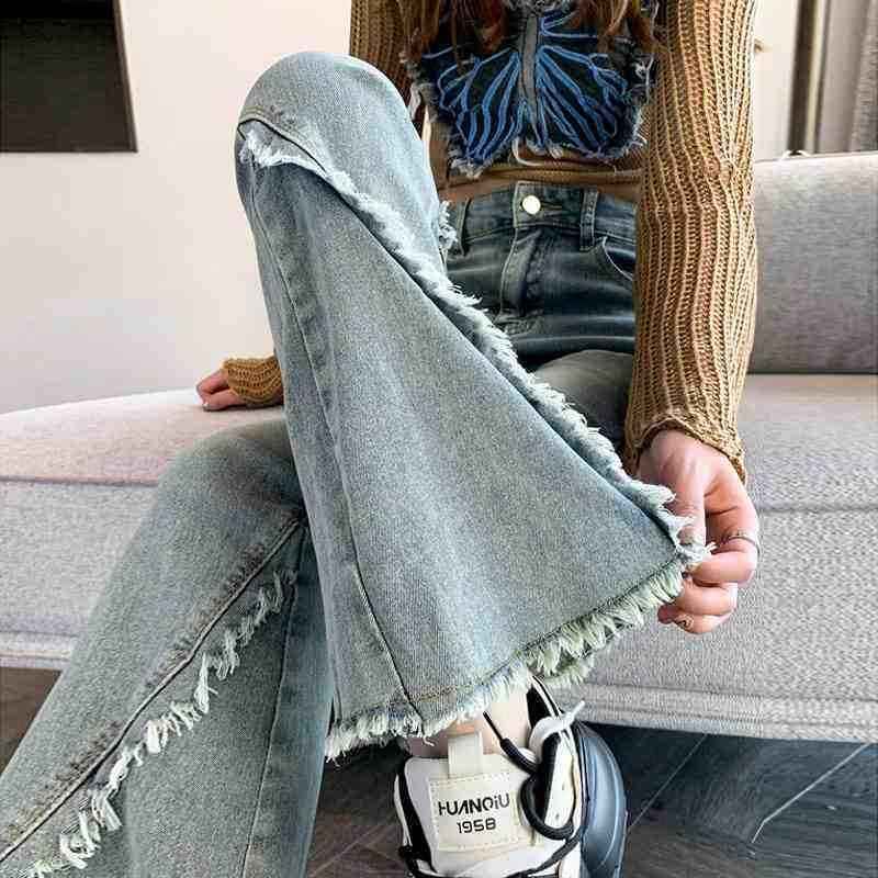 กางเกงยีนส์ขาตรงเอวสูงสำหรับผู้หญิง, กางเกงขากว้างทรงหลวมสไตล์ใหม่2025ฤดูใบไม้ผลิและฤดูใบไม้ร่วง