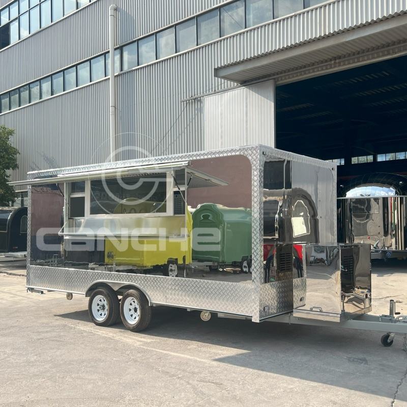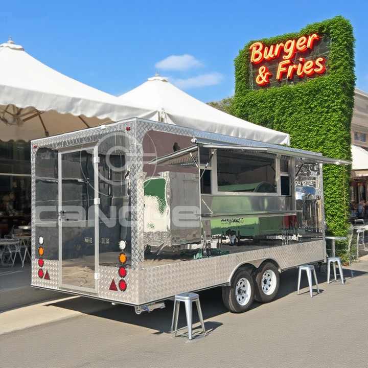 รถขายอาหารเคลื่อนที่แบบสี่เหลี่ยม ปี 2025 สำหรับขายแฮมเบอร์เกอร์ ฮอทดอก กาแฟ พร้อมโครงสร้างแบบสองแกน