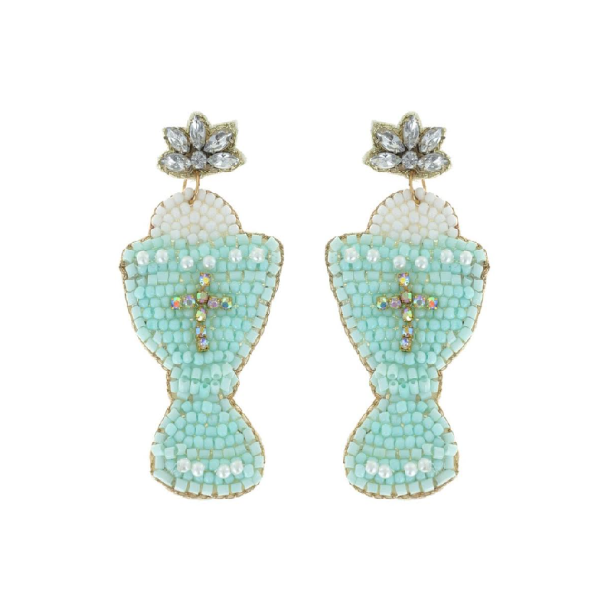 2025 Stock Handmade See Beaded Hot Light Blue Colored Heart Beaded Valentines Day Crystal Earrings Woman's Holiday Earrings