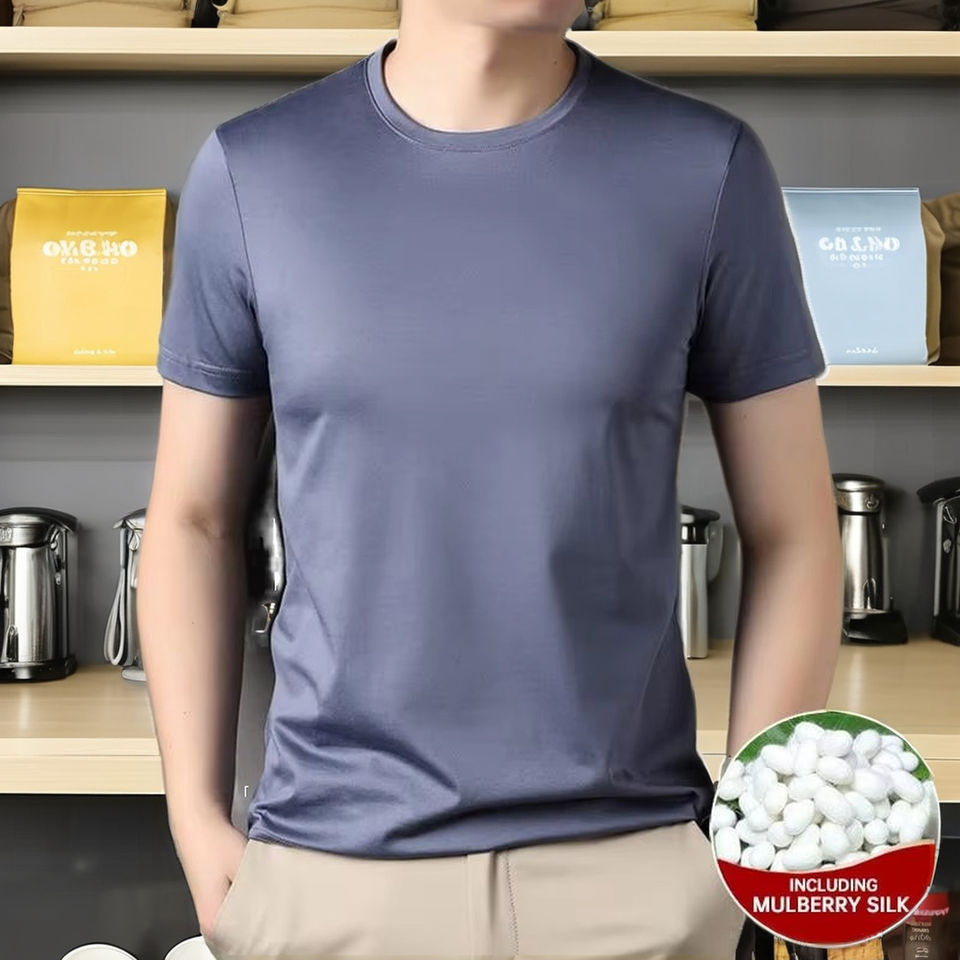 คอลเลกชันเสื้อยืดแฟชั่นลำลองของผู้ชายเกรดสูง2025แบรนด์ใหม่แขนสั้นผ้าไหม1.7% ผ้าฝ้าย100%