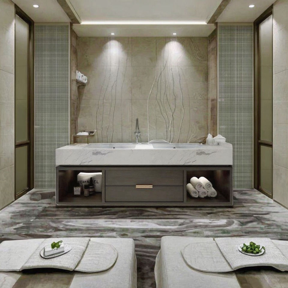 ตู้เมลามีนติดผนังสไตล์2025ตู้ในห้องน้ำกระจก LED อ่างเซรามิกวิลล่าสุดหรูรับประกัน5ปี