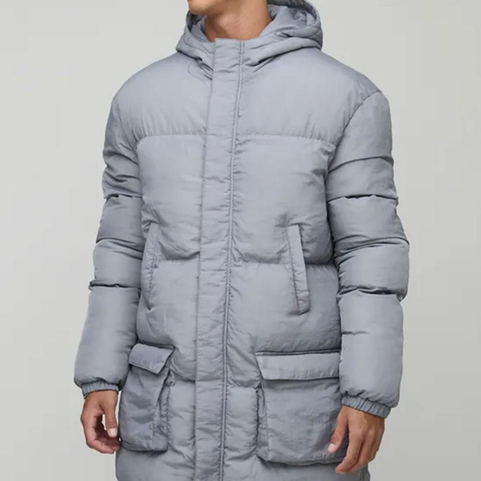 2025 Stylish Winter Outdoor Long Down Coat Sports Slim Thick Men Quilted Windproof Insulated Coat With Cargo Pocket puffer Coat