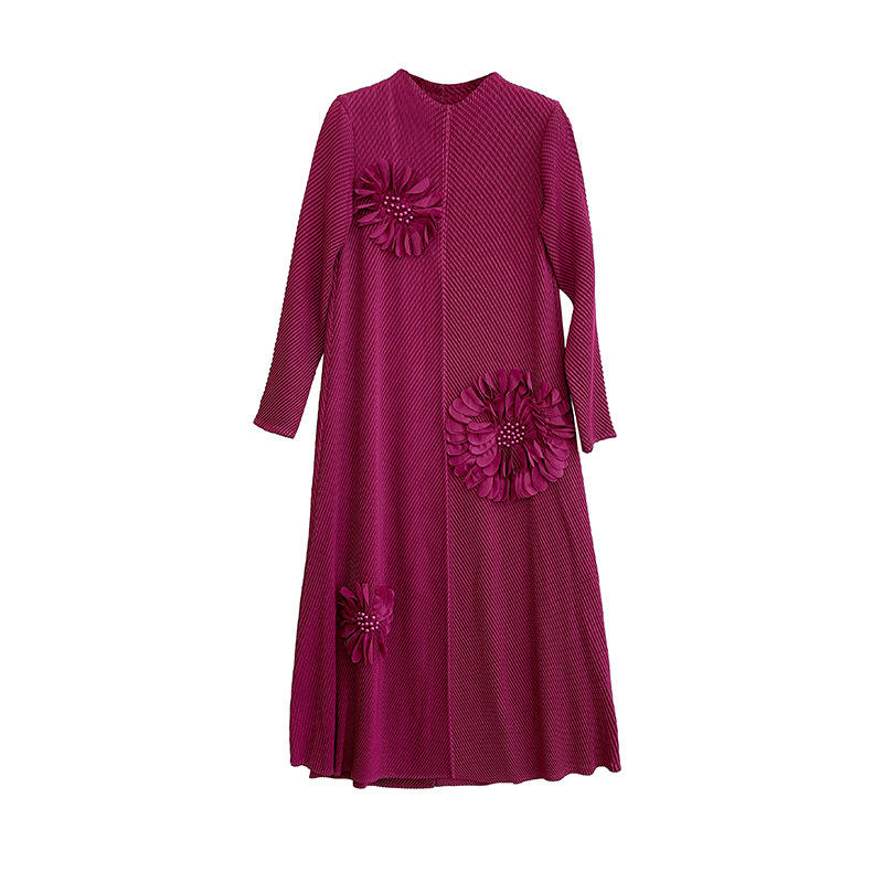 ชุดเดรสยาวทรงหลวมจีบระบาย รุ่นใหม่ ฤดูร้อน-ฤดูใบไม้ร่วง ปี 2025 ประดับดอกไม้และลูกปัดทำมือ เป็นมิตรกับสิ่งแวดล้อม ระบายอากาศได้ดี แขนยาว
