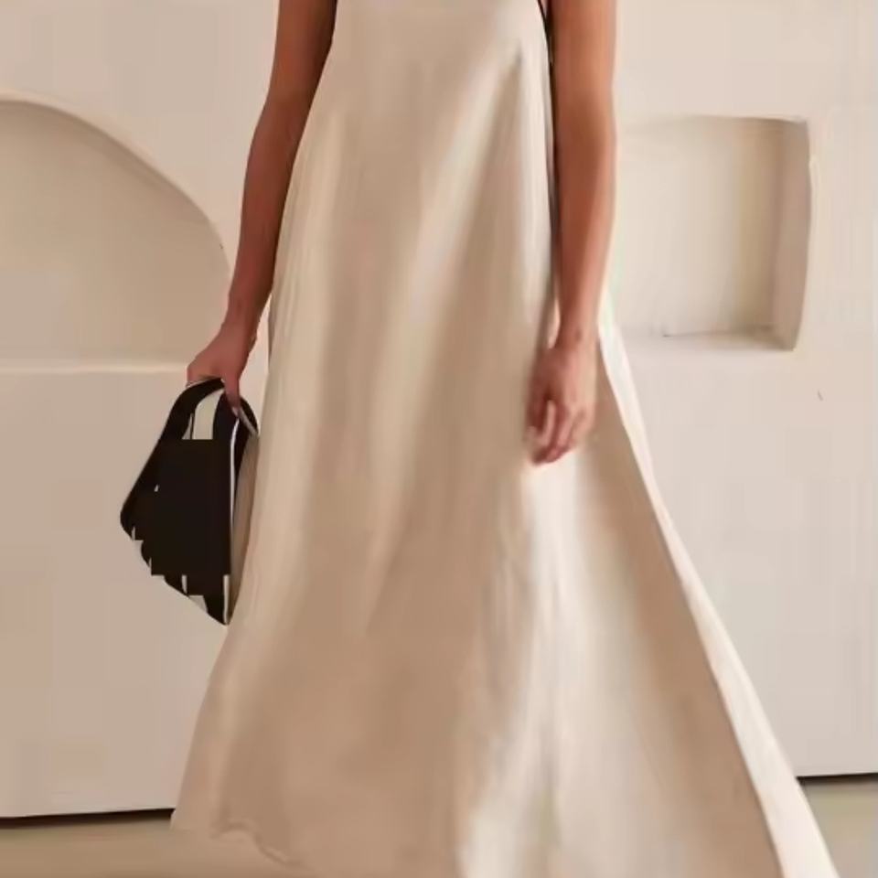 2025 Summer Dress Custom Label Sexy Thin Strap Solid Beach Dresses Women Summer100% Linen Dress