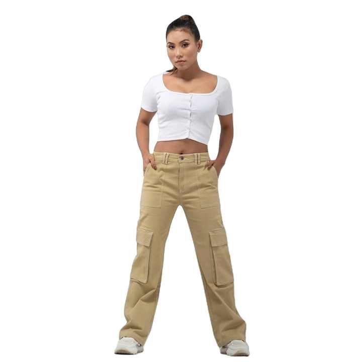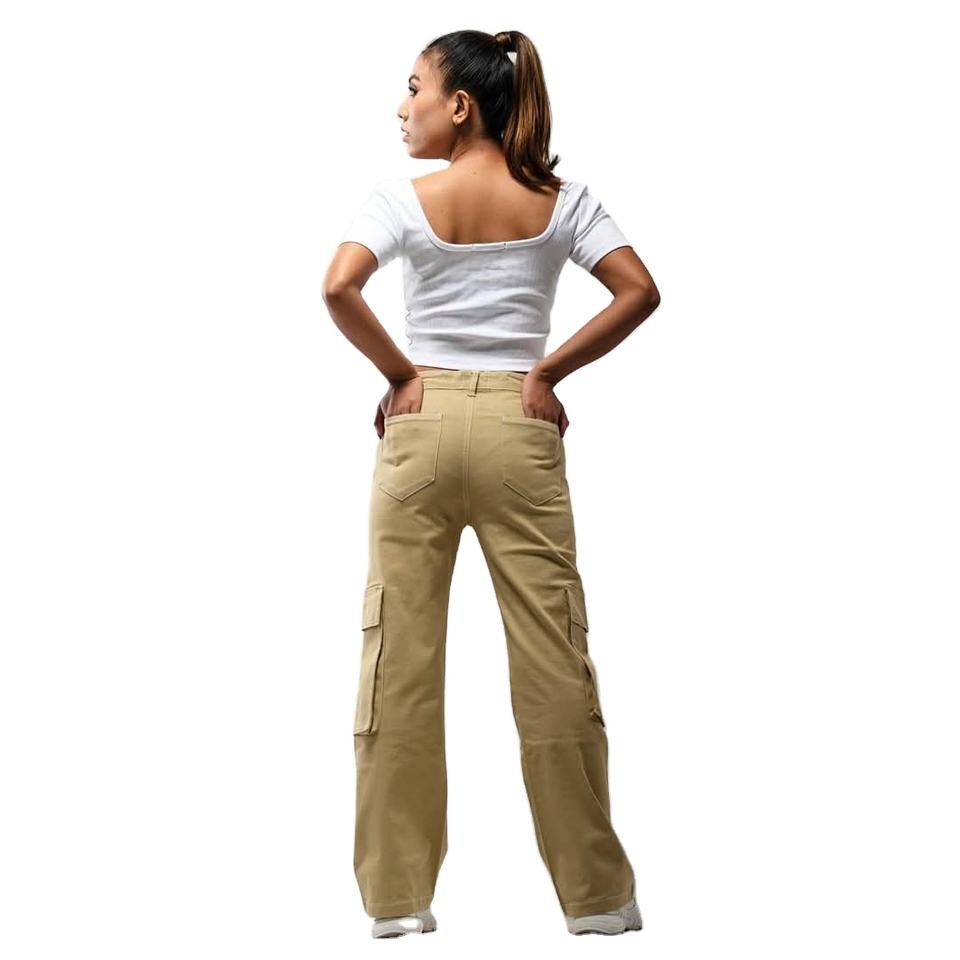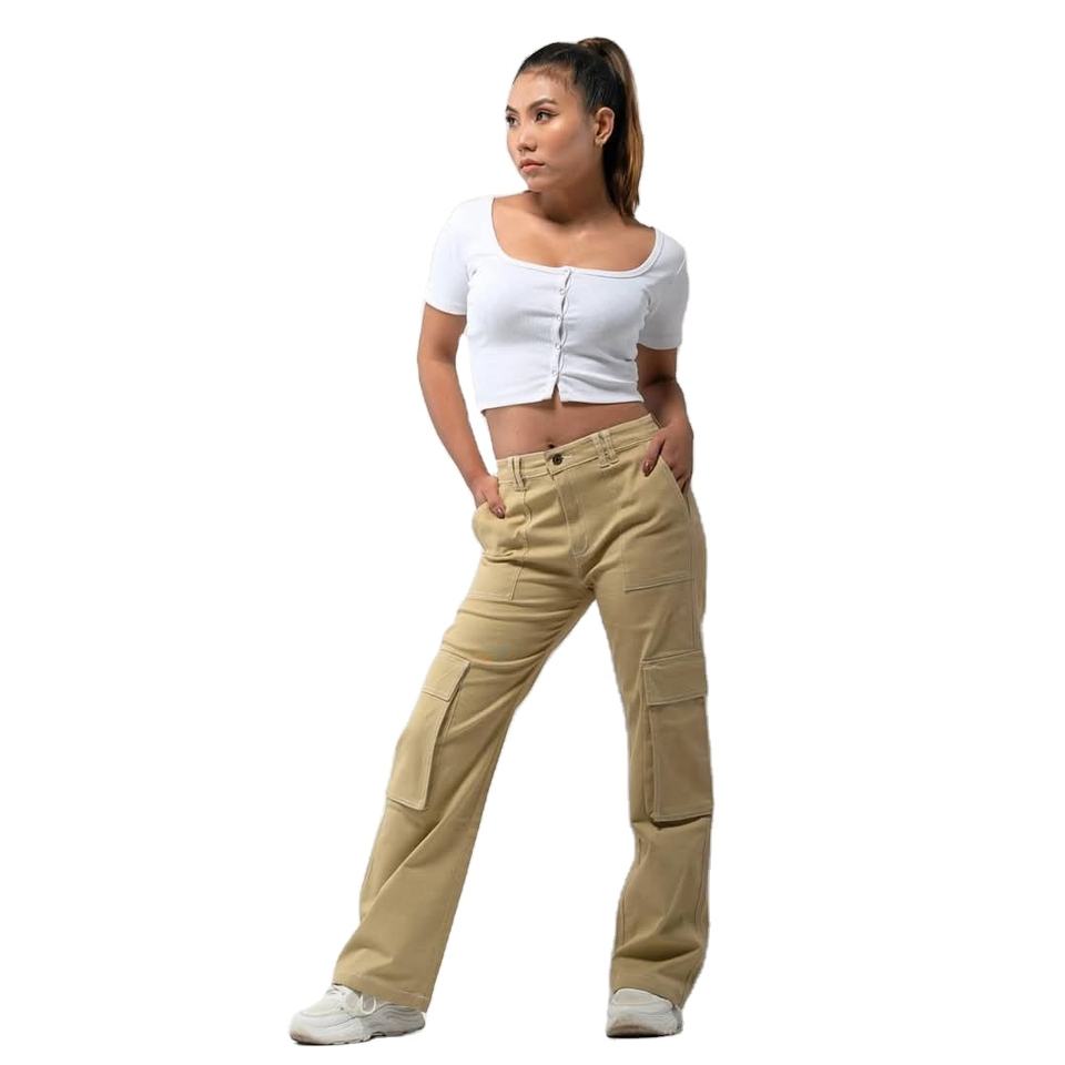 กางเกงคาร์โก้เอวสูงแบบหลวมสำหรับผู้หญิงกางเกงลำลองสีเทาของตกแต่งลวดลายทำงานในฤดูใบไม้ผลิ2025ฤดูร้อน