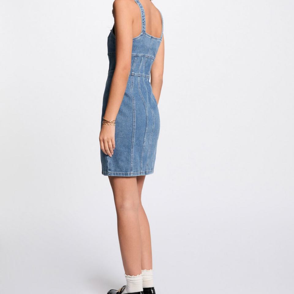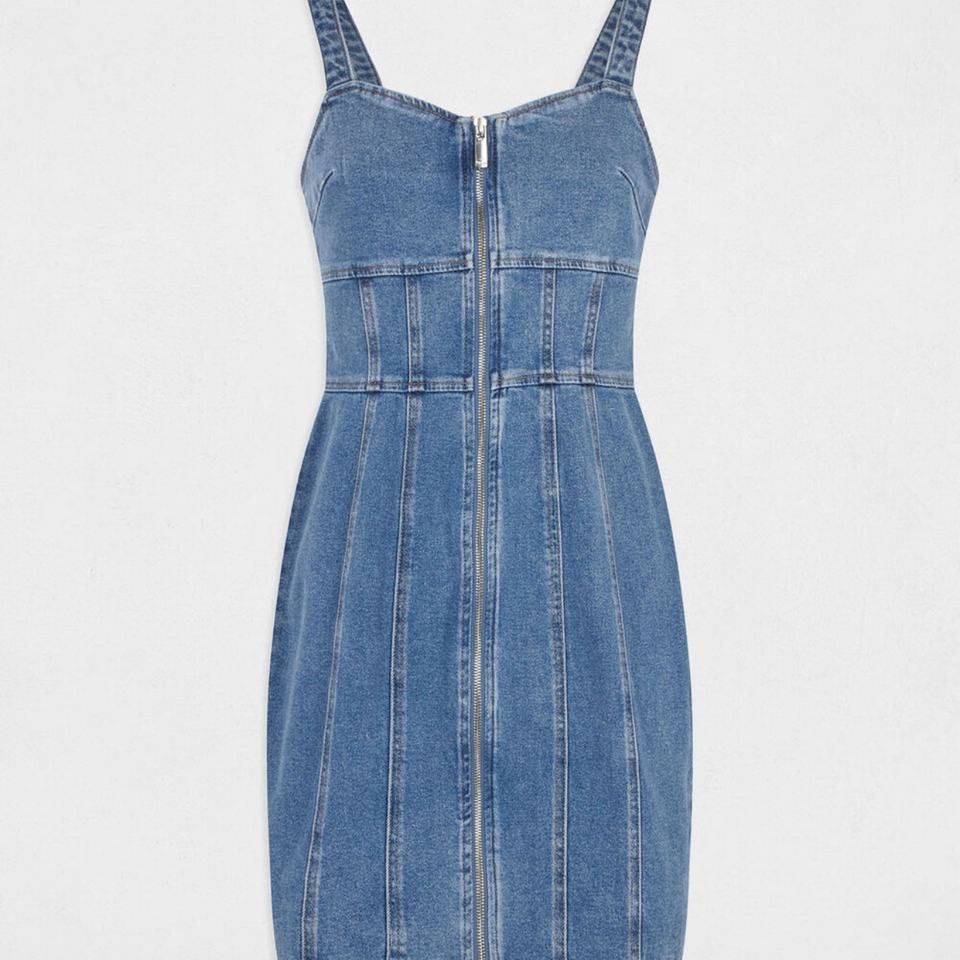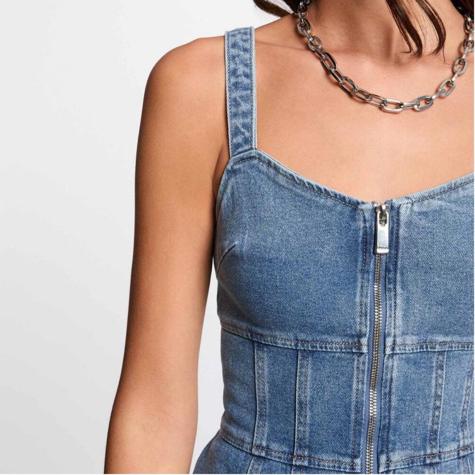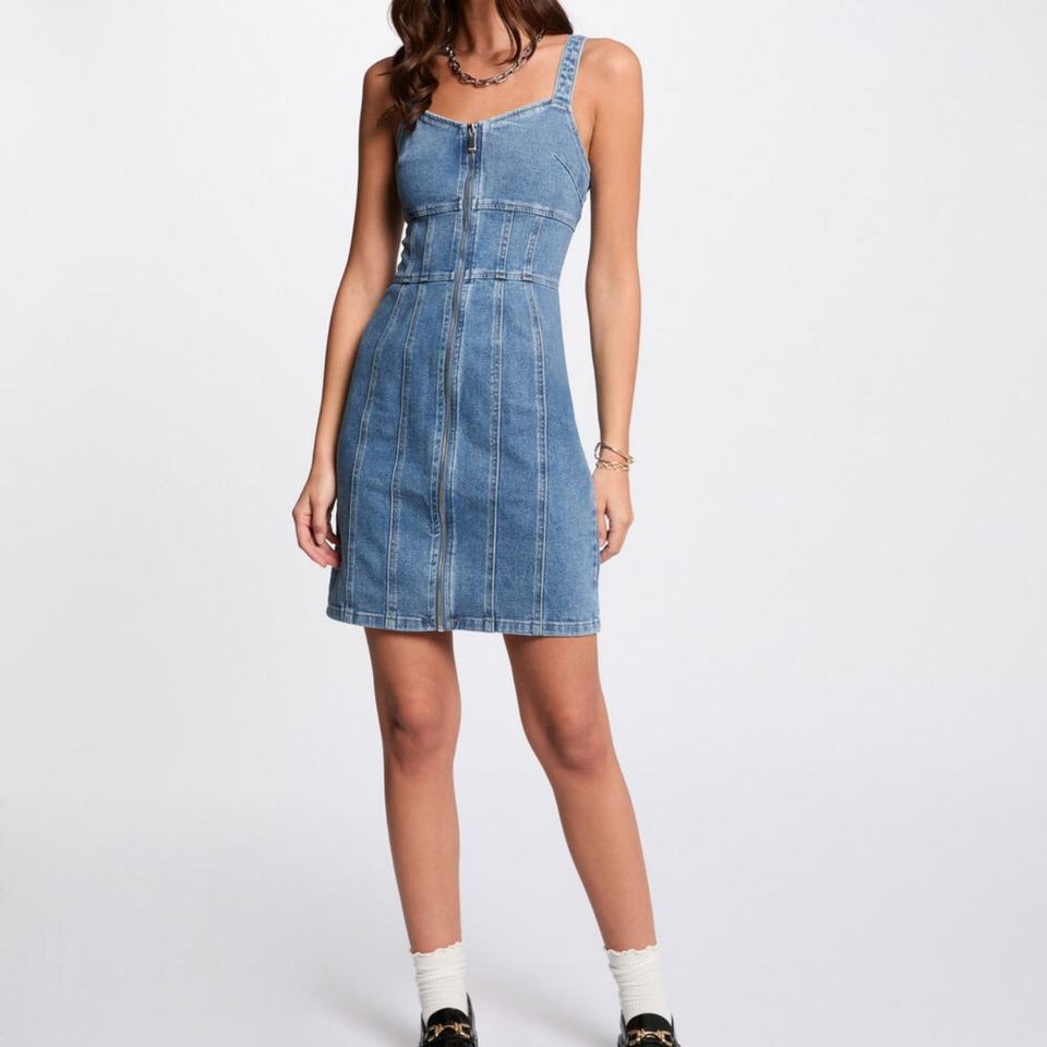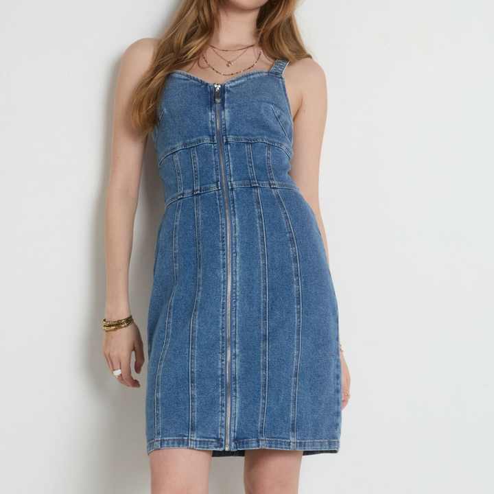 ชุดเดรสยีนส์ยืดสำหรับผู้หญิง ลดราคาสุดฮอตซัมเมอร์ 2025 ชุดรอมเปอร์ซิป กระโปรงยีนส์ทรงเข้ารูปสั้น