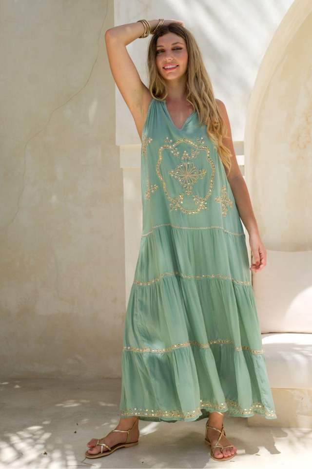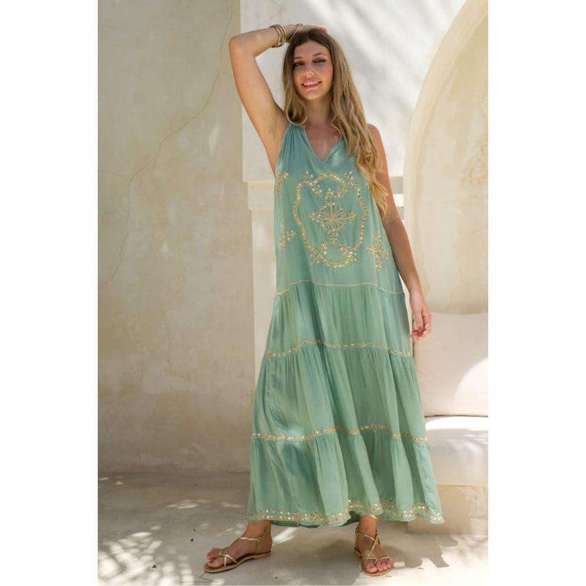 2025 Summer Ladies Boutique Clothing Custom Long High and Maxi Floral Embroidered Cotton Boho Dresses Women Elegant Casual Dress