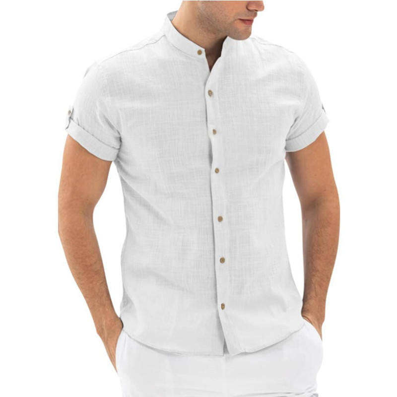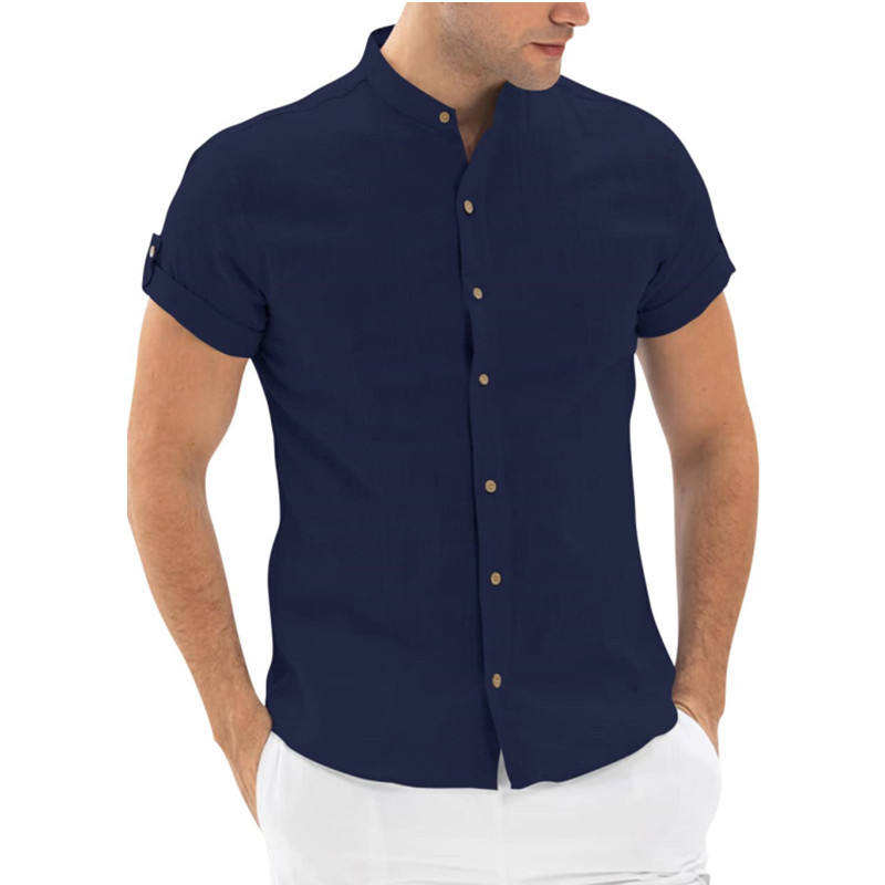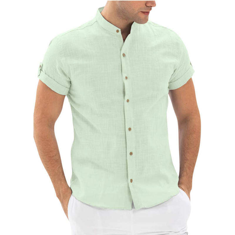 เสื้อเชิ้ตผู้ชายแขนสั้นผ้าถักคอตตอน 100% สำหรับฤดูร้อนปี 2025 สไตล์ลำลอง เหมาะสำหรับวิ่งและกอล์ฟ พร้อมปกตั้ง