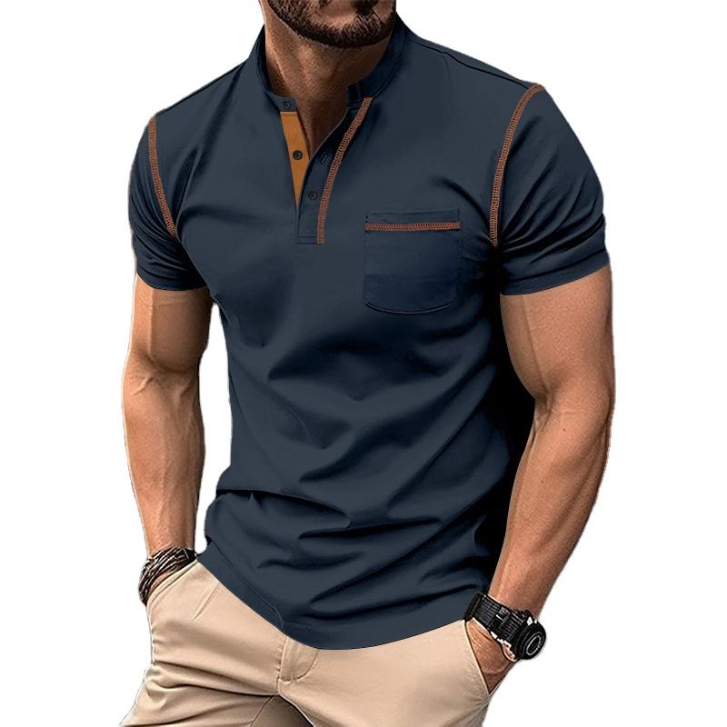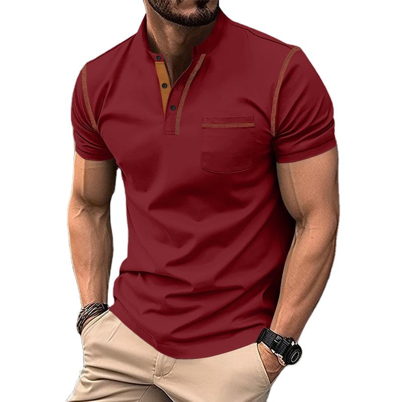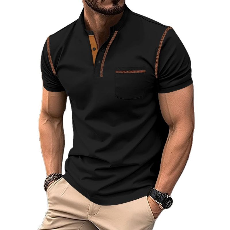2025เสื้อลำลองผู้ชายฤดูร้อนเสื้อแขนสั้นกระดุมเสื้อโปโลคอวีปักสีพื้นระบายอากาศ