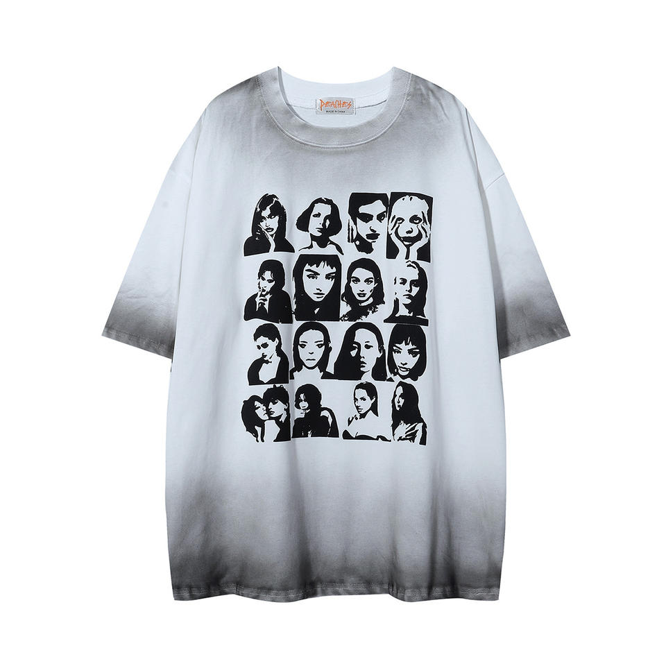 2025 Summer Men's Hip-Hop Street Style T-Shirt Dark Avatar Wasteland Pattern 100% Cotton Jersey Loose Short Sleeves Knitted