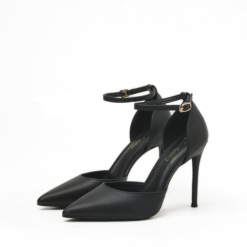 รองเท้าส้นสูงแบบคัตเอาท์สำหรับผู้หญิง รุ่นใหม่ประจำฤดูร้อนปี 2025 ส้นเข็ม ปลายแหลม สายรัดเส้นเดียว ปิดนิ้วเท้า ดีไซน์ทันสมัย เรียบง่าย สไตล์เกาหลี