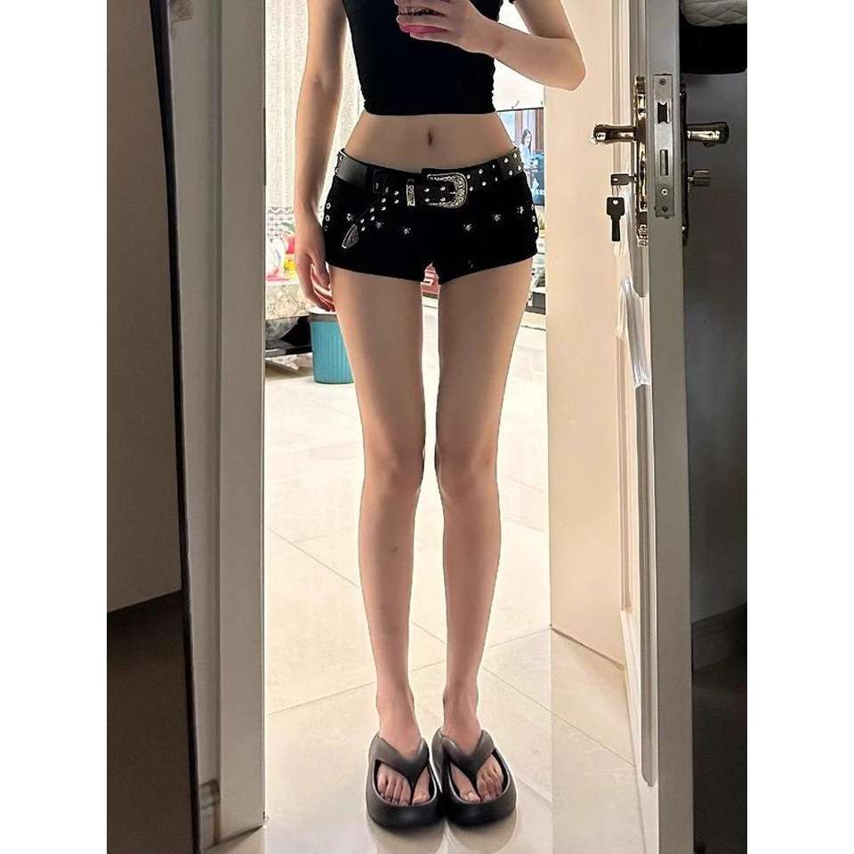 2025 Summer New Design Sexy American Style Mid-Waist Denim Shorts for Women Elastic Tight Slimming Hip Print Hot Pants