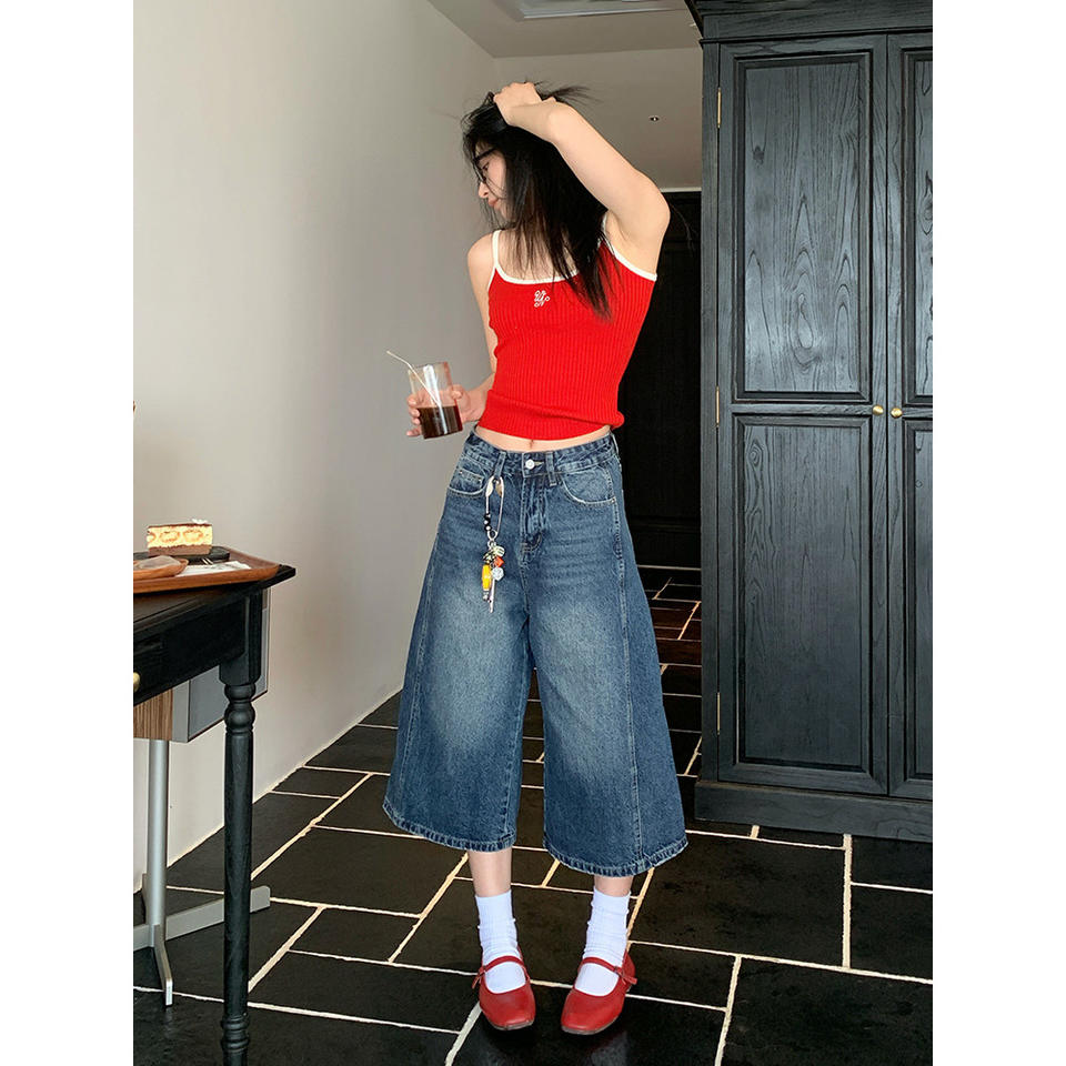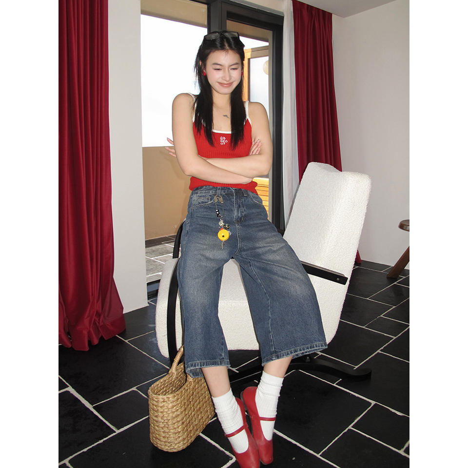 สี:กางเกงขายาววินเทจสีฟ้าตัด