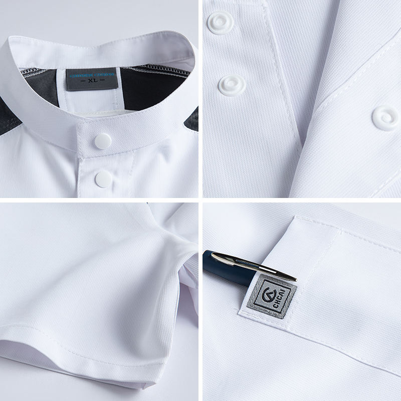 เครื่องแบบเชฟประจำโรงแรมแขนสั้นระบายอากาศได้ดีชุดเชฟสีขาวสำหรับทำงานเบเกอรี่ใหม่ฤดูร้อน2025