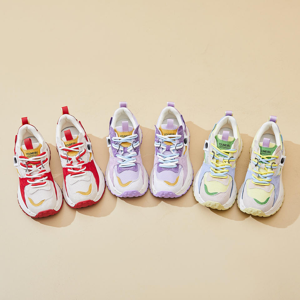 รองเท้าวิ่งออกกำลังกายสำหรับผู้หญิงดีไซน์เฉพาะแนวสปอร์ตรองรับแรงกระแทกพื้นหนาคลาสสิกใหม่สำหรับฤดูร้อน2025