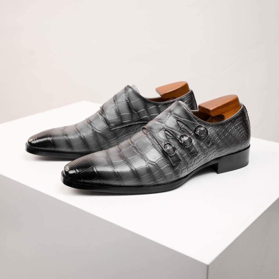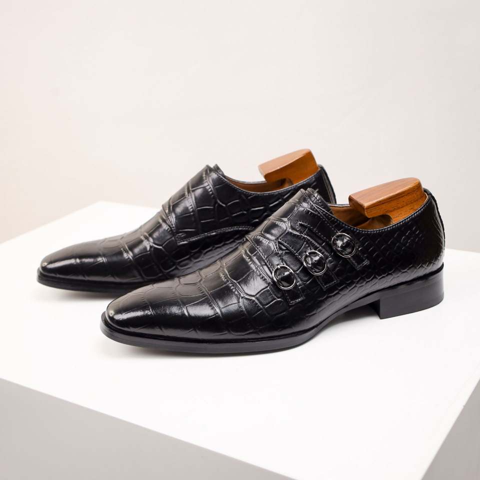 รองเท้าบูร็อกหัวเหลี่ยมแบบผูกเชือกสำหรับผู้ชายรุ่นใหม่ประจำฤดูร้อนปี 2025 ไซส์ใหญ่พิเศษ ระบายอากาศได้ดี หนังแท้ สไตล์ทางการ ลายนูนแบบ Monk