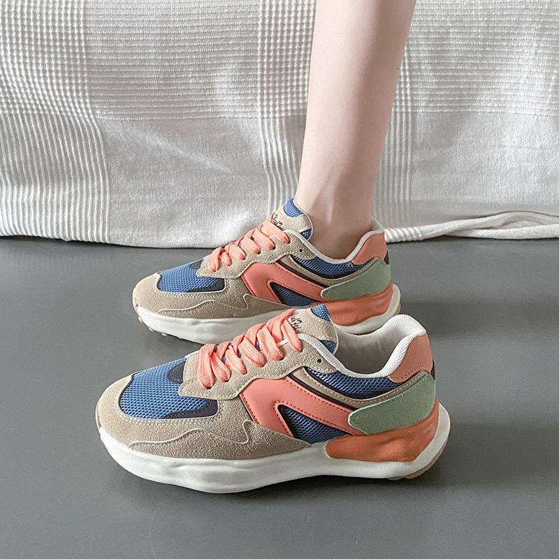 รองเท้าวิ่งผู้หญิงพื้นหนาสำหรับฤดูร้อน, รองเท้าวิ่งหัวมนลำลองพื้นหนารองเท้าอเนกประสงค์สำหรับนักเรียน2025