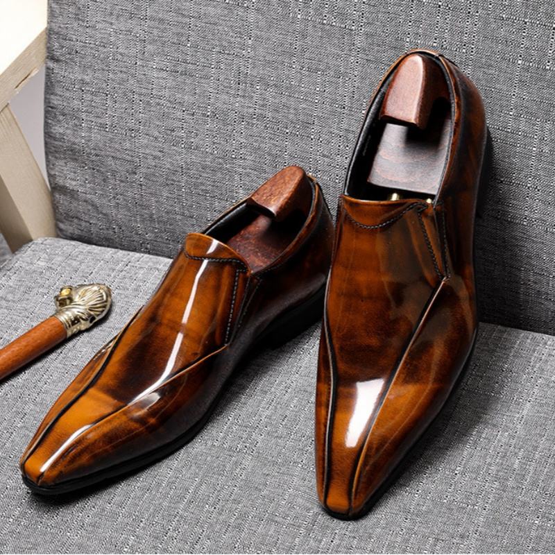 รองเท้าหนังแก้วกันน้ำแฟชั่นสไตล์อังกฤษทรงหัวแหลมสำหรับงานเลี้ยง งานแต่งงาน รองเท้าผู้ชายแบบลำลอง รองเท้าอ็อกซ์ฟอร์ด รุ่นใหม่ประจำฤดูร้อนปี 2025