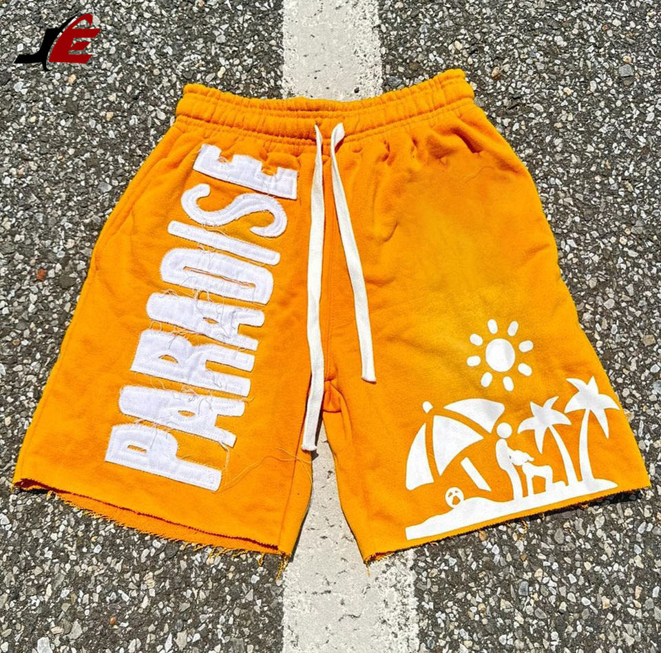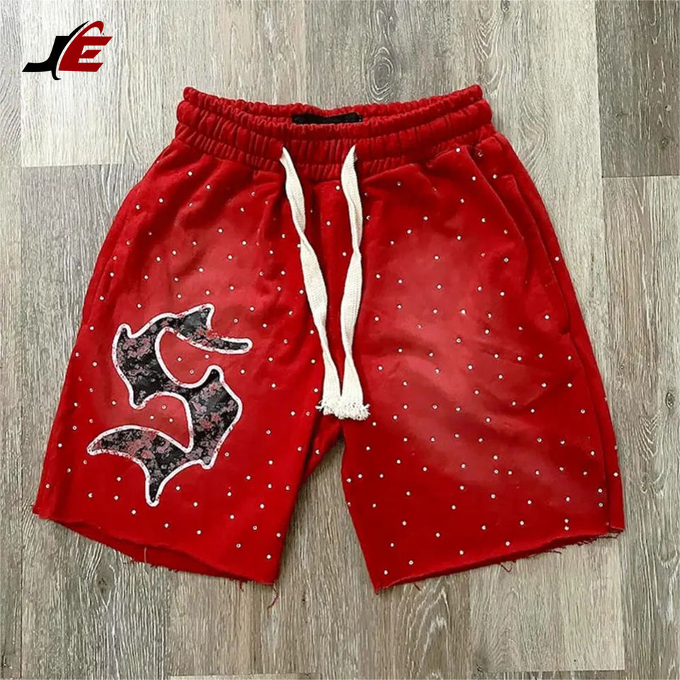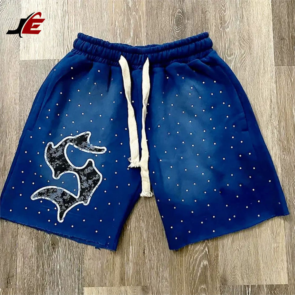 กางเกงขาสั้นผ้าฝ้ายซักกรดสำหรับผู้ชายกางเกงขาสั้นผ้าฝ้ายปักสไตล์ลำลองแบบ100% ออกแบบได้ตามต้องการฤดูร้อน2025