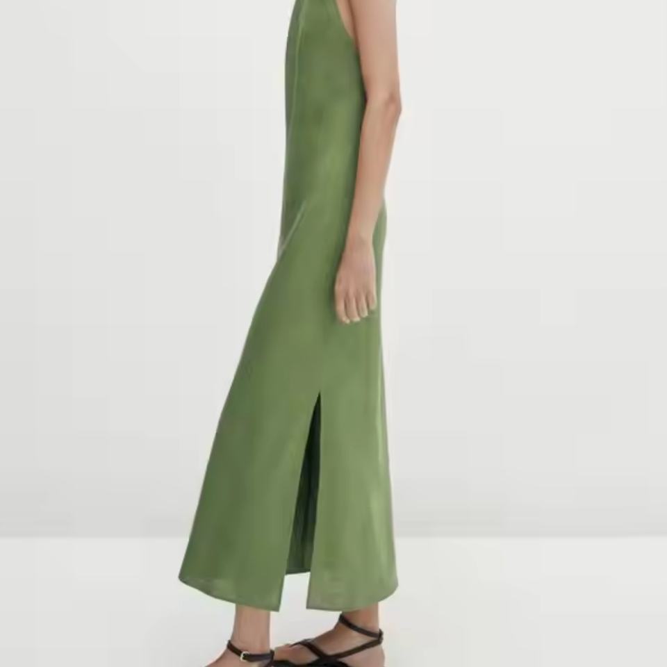 เดรสลำลองเซ็กซี่สำหรับฤดูร้อนปี 2025 ขายส่ง เดรสผ้าลินินคอตตอนแบบผูกคอ ไร้แขน สายเดี่ยว สำหรับผู้หญิง