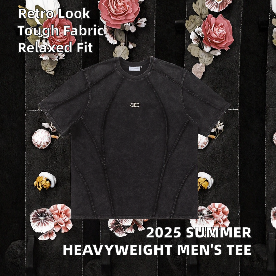 2025 Summer Vintage Oversized Casual T-Shirt for Men American Street Fashion Brand High Quality Heavyweight Cotton Loose Solid