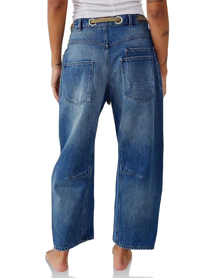 กางเกงยีนส์ผู้หญิงแบบผูกเชือก:พกพา