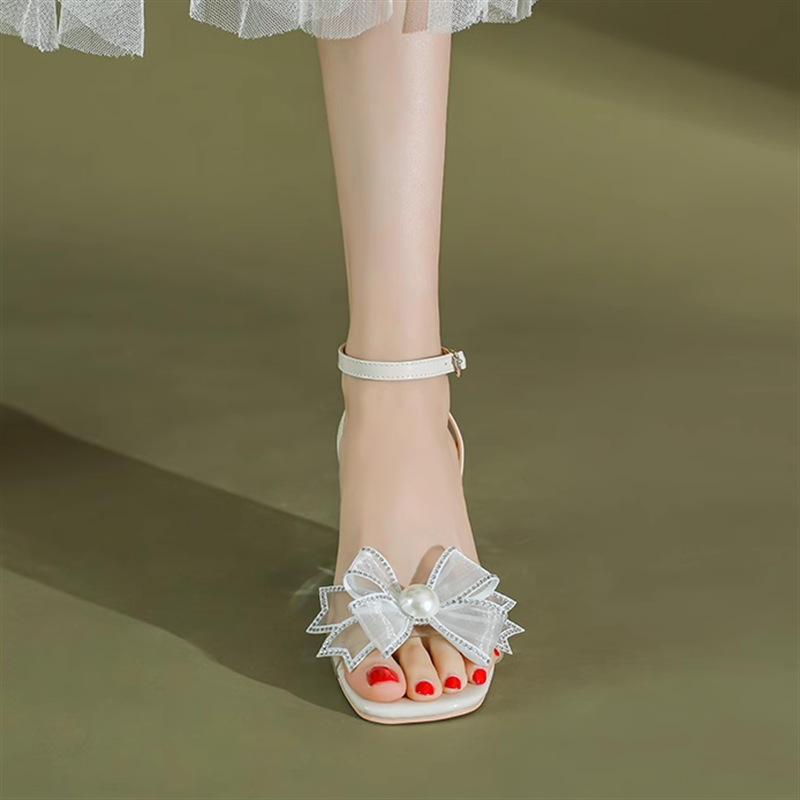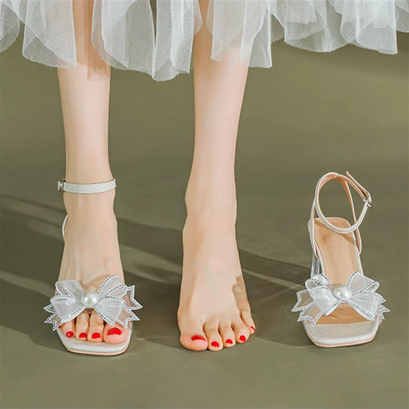2025ฤดูร้อนรองเท้าผู้หญิงรองเท้าส้นสูงเปิดหัวหัวเข็มขัดแบบสายเดียวรองเท้าแตะส้นสูงแฟชั่นสไตล์ตาข่าย