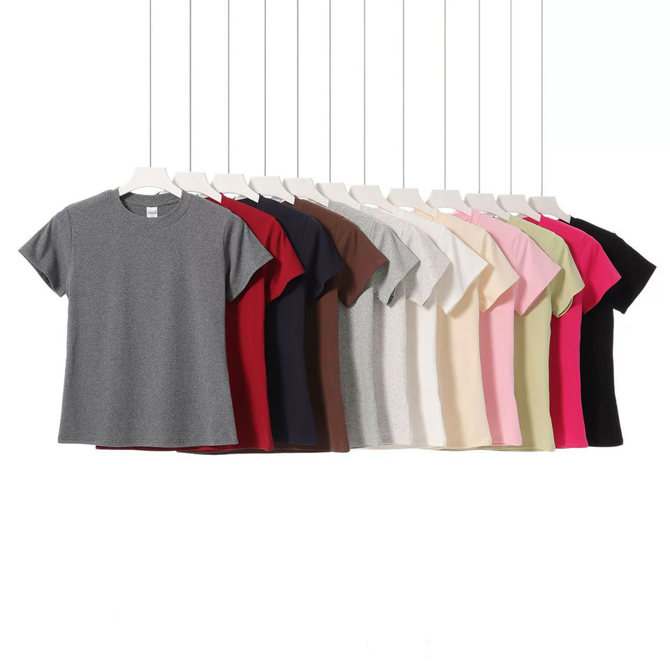 2025 Summer Women's Top Round Neck, Slim-Fit Crop, Structured Shoulder Stretchy