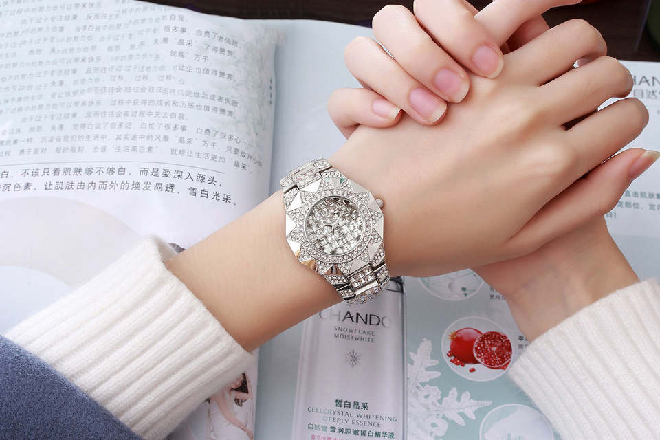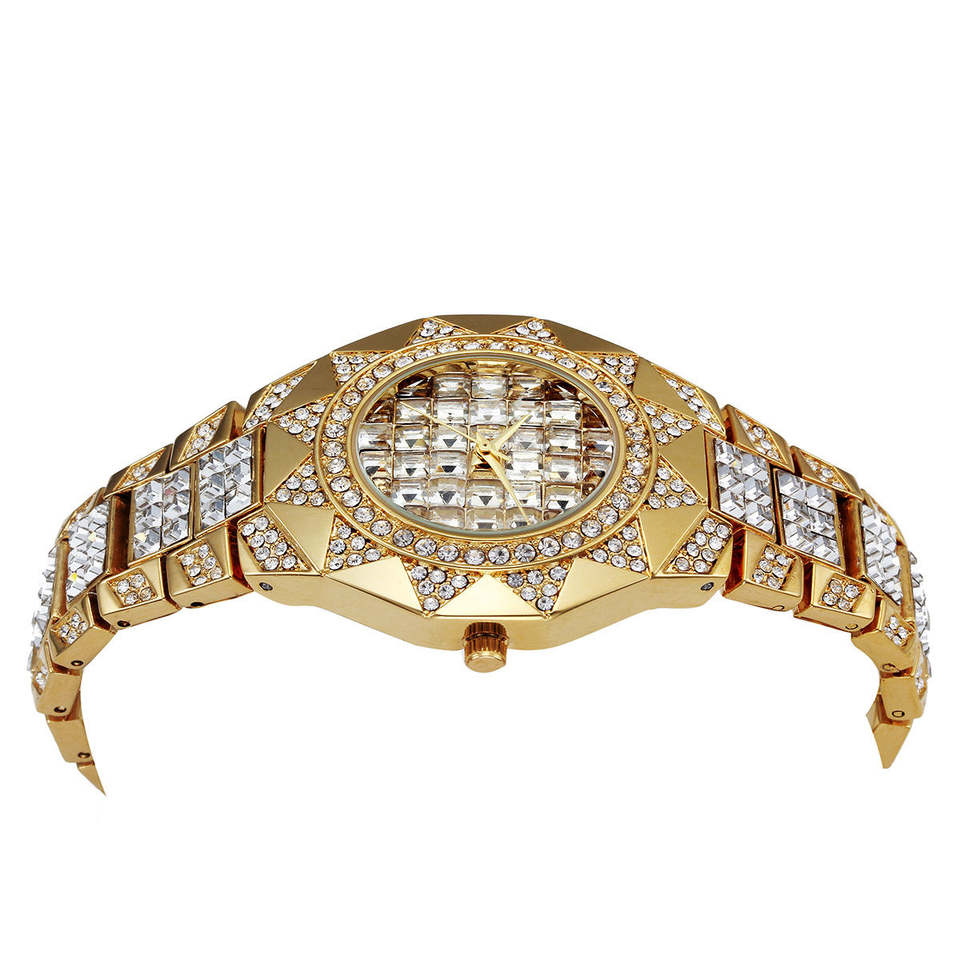 นาฬิกาข้อมือผู้ชายสแตนเลสทรงพระอาทิตย์ ปี 2025 แบรนด์ดัง ควอตซ์ ประดับเพชรทรงบาแก็ตต์ สีทอง แฟชั่น สายหนัง สำหรับผู้หญิง