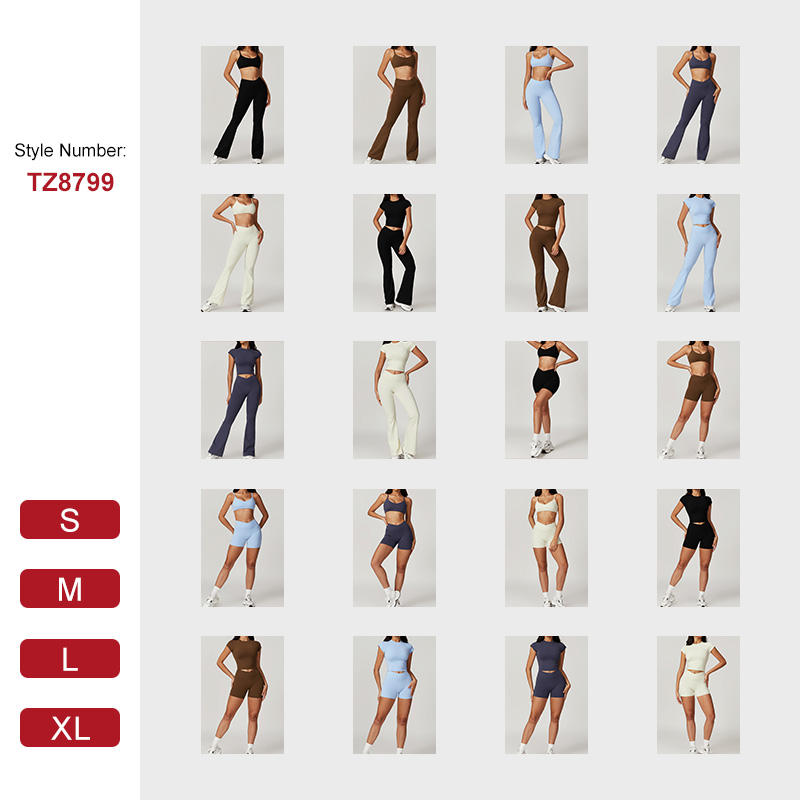 2025 TZ8799women Yoga Sport Bra High Waist Flare Pant Shorts Skinny Top With Recycle Fabric 4 Pieces Gym Set Activewear Gym Wear
