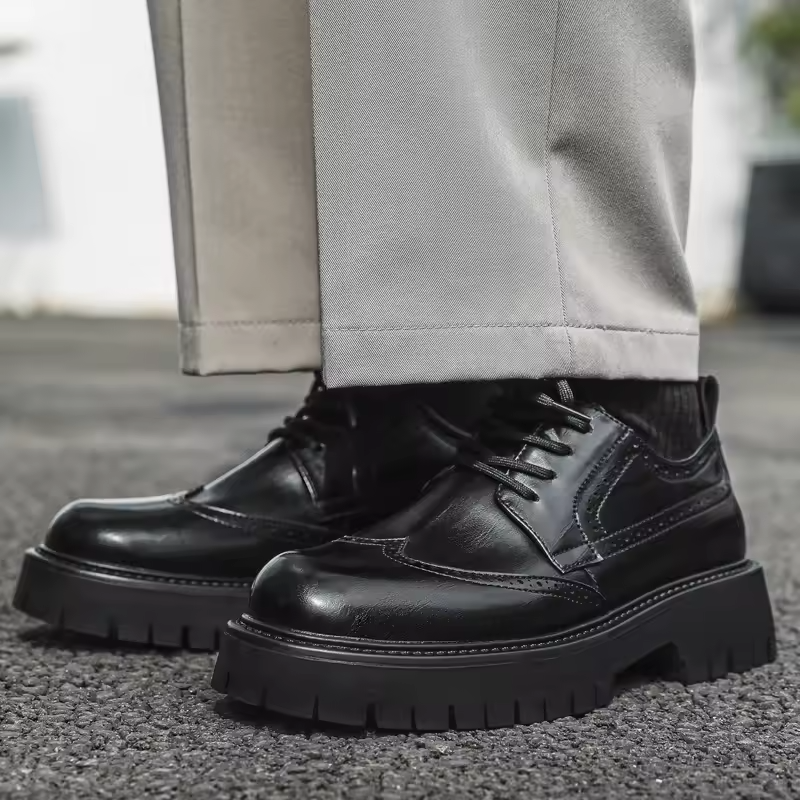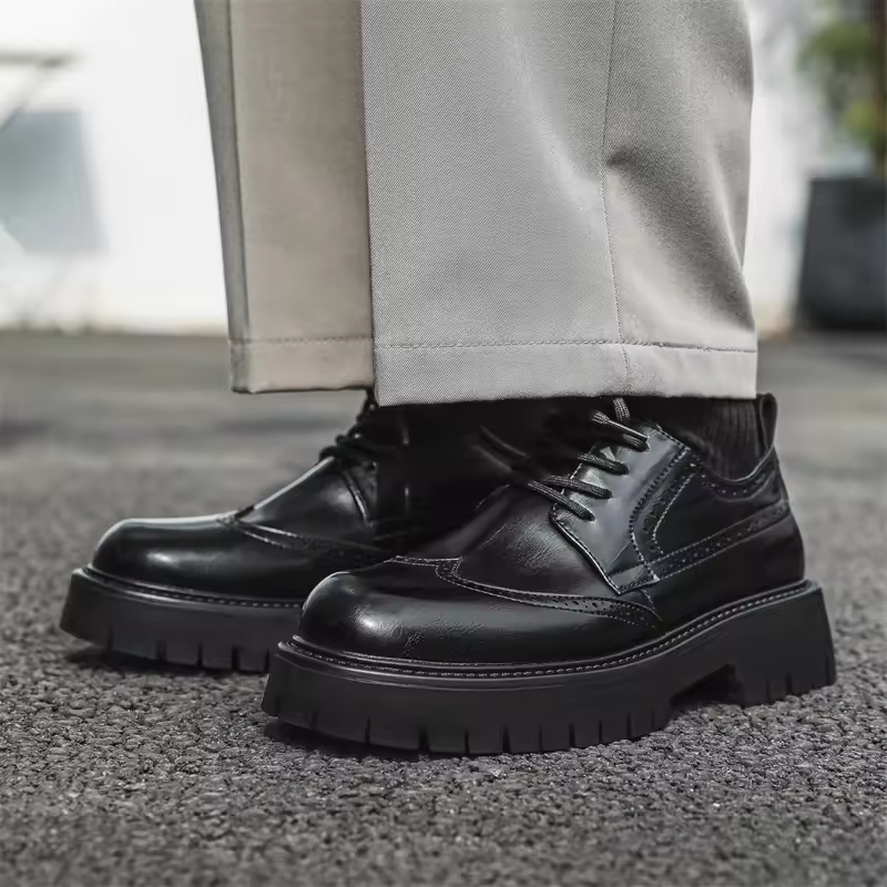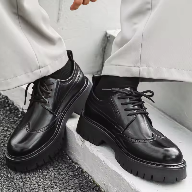 รองเท้าหนังแบบผูกเชือกสำหรับผู้ชาย ปี 2025 สไตล์ทางการและลำลอง กันน้ำ พื้นหนา เหมาะสำหรับงานแต่งงาน