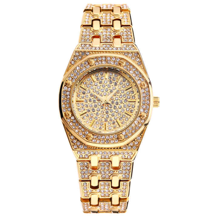 นาฬิกาข้อมือผู้ชายแบรนด์ดีไซเนอร์ชั้นนำปี 2025 หรูหรา หน้าปัดคริสตัลแซฟไฟร์ ขนาด 42 มม. สายหนัง กันน้ำ ประดับเพชรและทอง