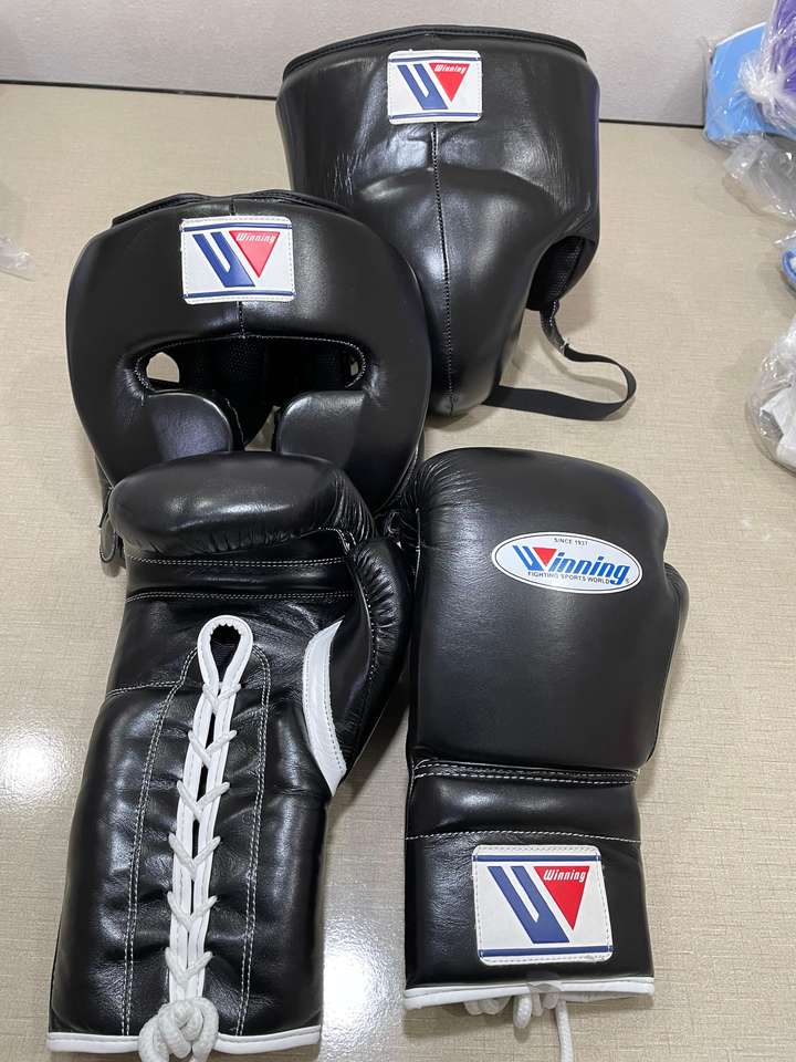 2025 Top Quality Genuine Leather Black Color Winning Boxing Sparring Boxing Gloves Head Guard Groin Guard MS-SS- 006